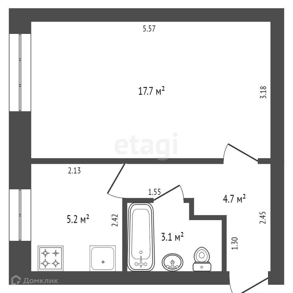 Общая площадь 30.7 м2