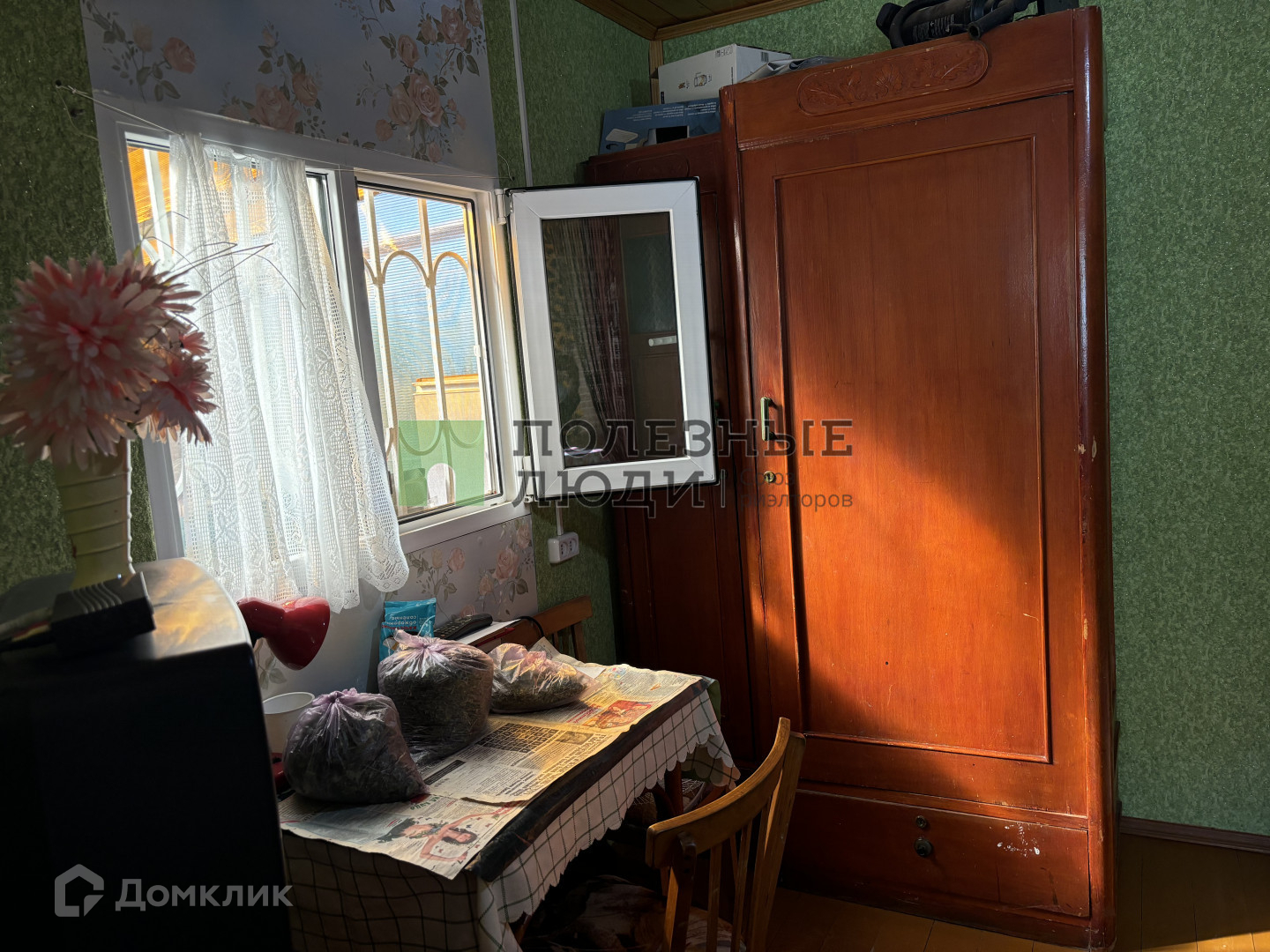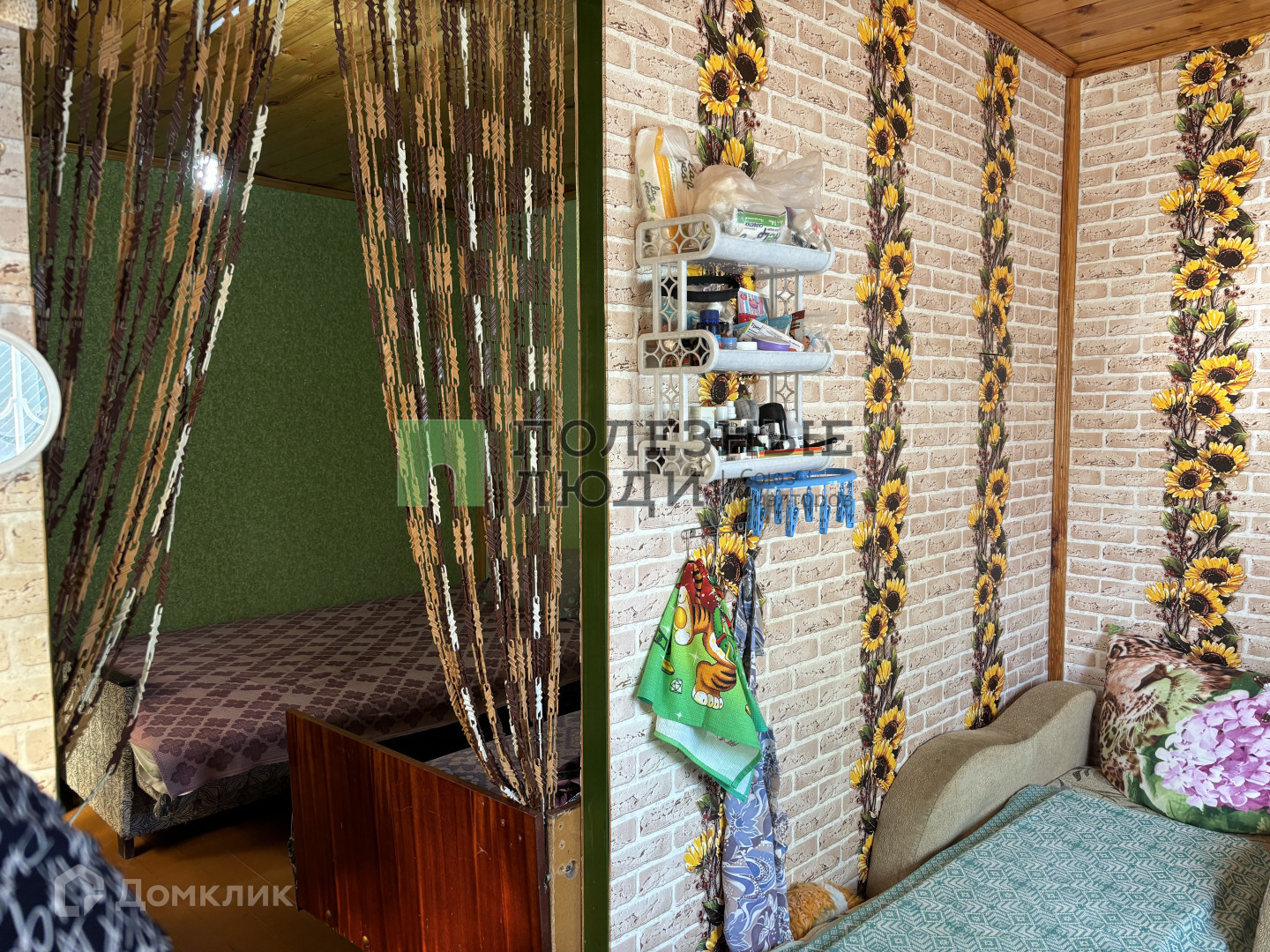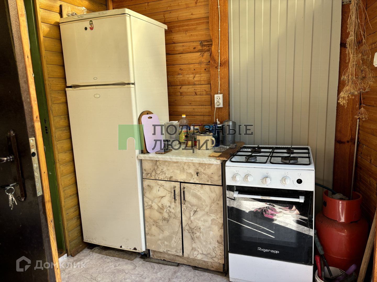 Сам домик каркасный, обшит деревом. В доме 2 комнаты и пристроена летняя пристройка-кухня.
