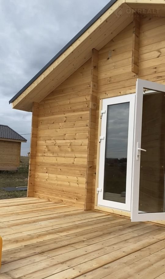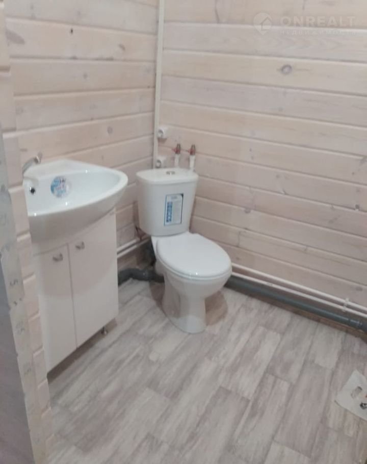 Крыша и пол утеплены. Стены покрашены белой пропиткой, которая сохраняет текстуру дерева, линолеум во всех комнатах, установлен унитаз, раковина.