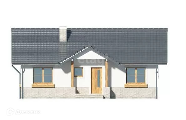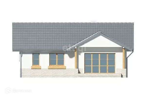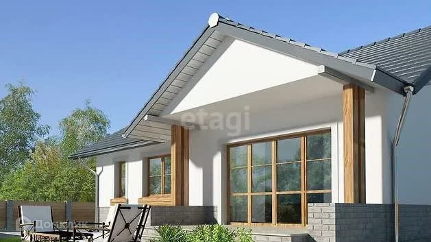 Предлагаю проект дома из газоблока, общей площадью 107 квадратных метра, простой и недорогой в постройке одноэтажный дом, с двускатной крышей с углом наклона 30 градусов с просторными комнатами и кухней-гостиной. Проект дома позволяет сделать вторую спальню, крытую террасу и гараж на 1 или 2 автомобиля. Есть гостиная со стеклянным выходом на террасу, полуоткрытая, функциональная кухня, большая ванная комната с окном, спальня с собственной гардеробной и дополнительная комната.