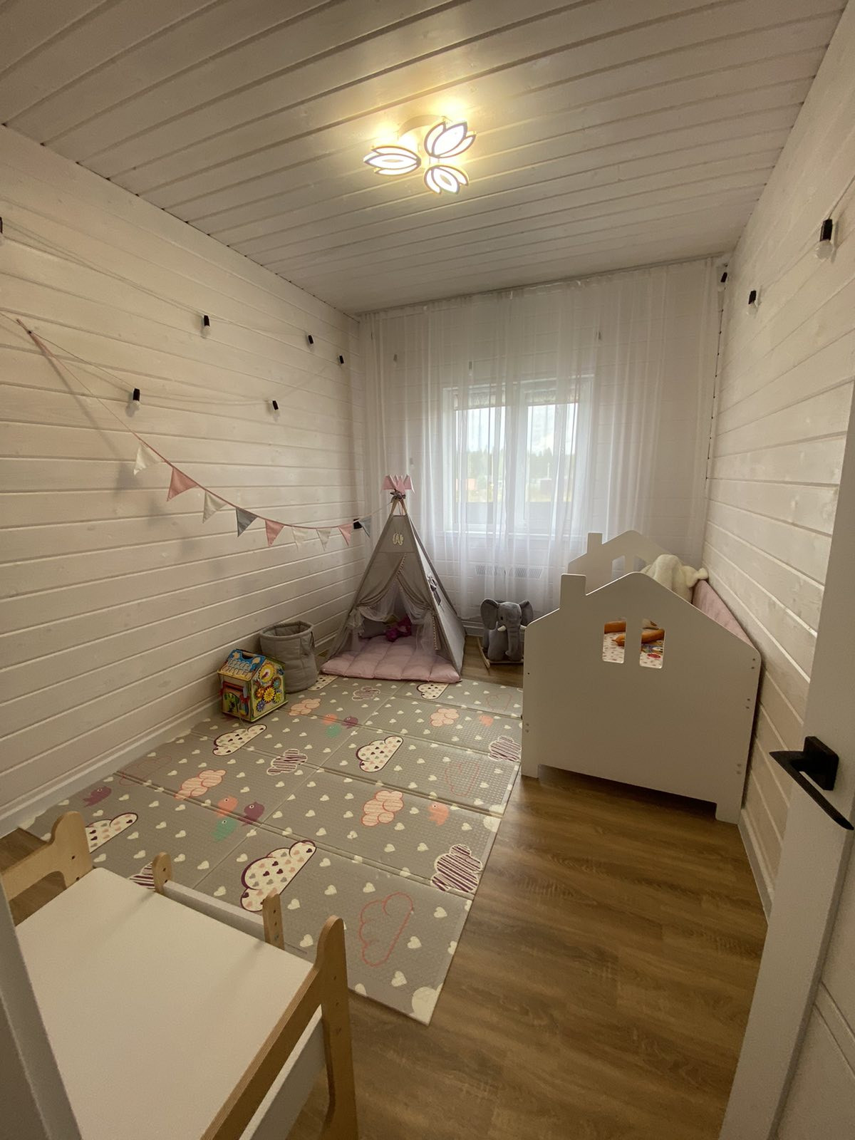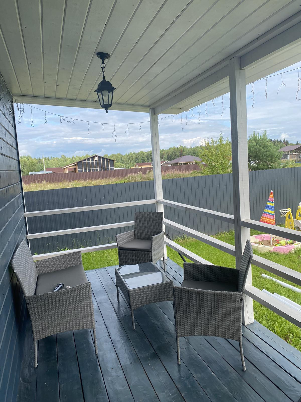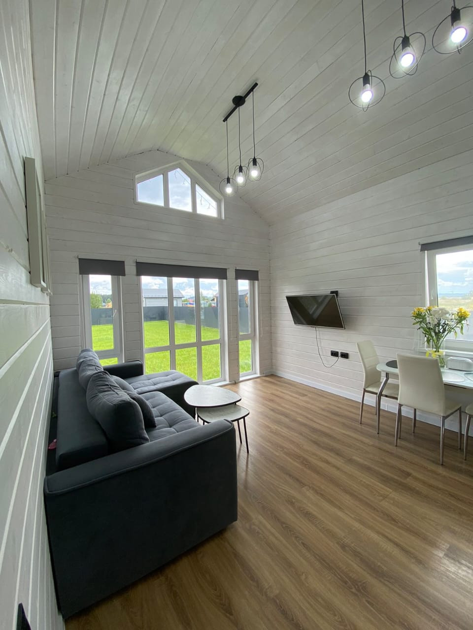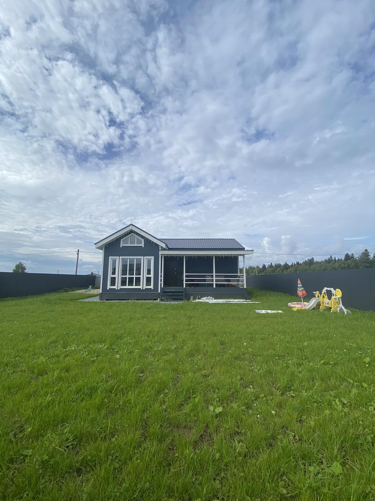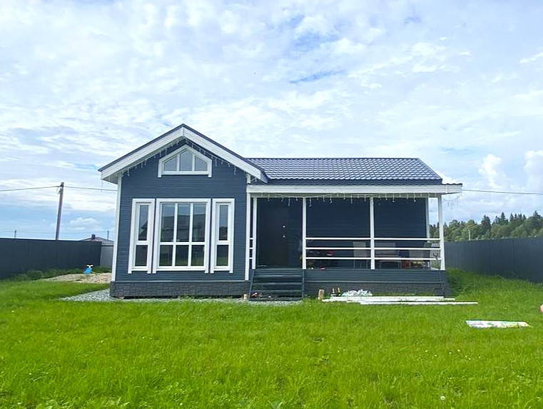 В доме 4 комнаты и большая терраса 12 м2, кухня-гостиная 20 м2, 2 спальни по 12 м2, 1 комната 10 м2 и санузел 5 м2. В гостиной сделан второй, высота потолка 4,5 метра, панорамное остекление.