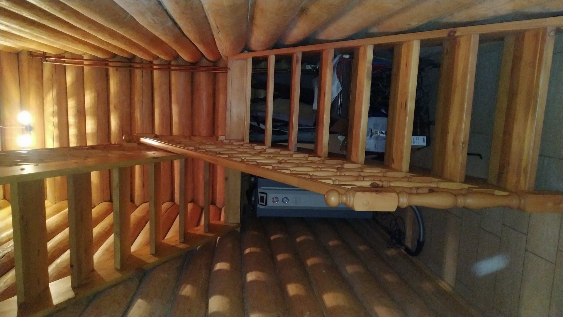 На втором этаже светлые спальни, две из них с выходом на крытую веранду, третья спальня просторная, с гардеробом. Второй сан. узел с ванной, туалетом и рукомойником. Помещение для хранения и второй бойлер для обогрева воды. Везде проведено отопление, водяные батареи. Дом очень тёплый, светлый, дышится легко, кругом натуральные материалы, дерево.