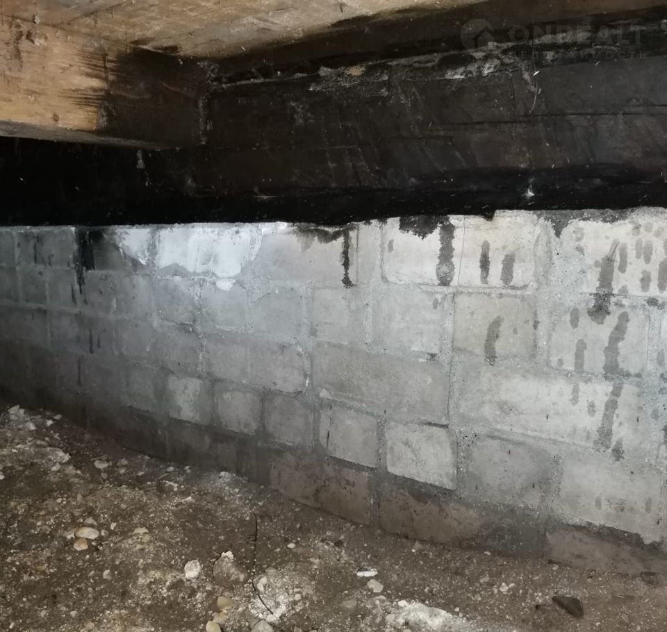 Фундамент ленточный. Поднят на кирпичи.