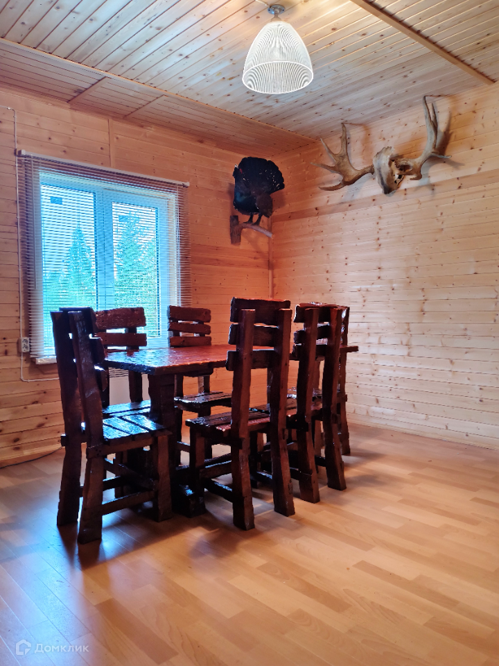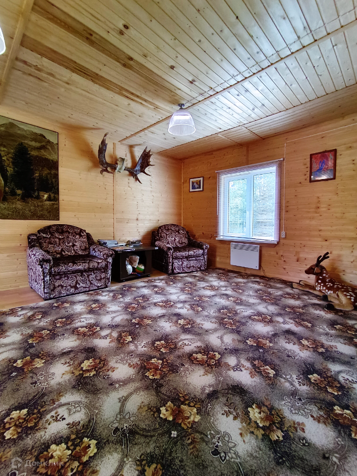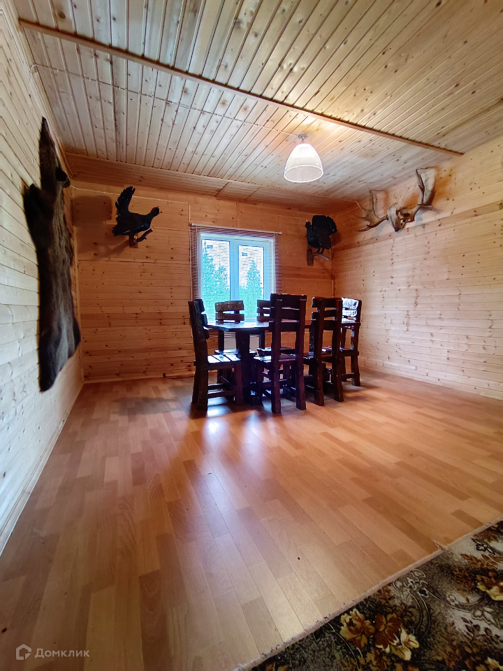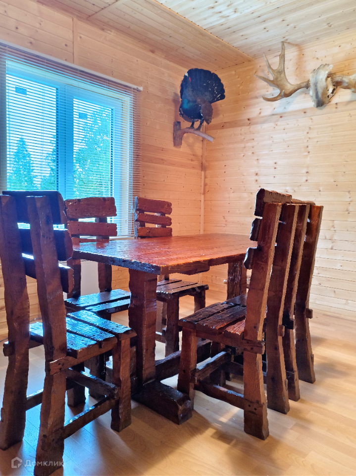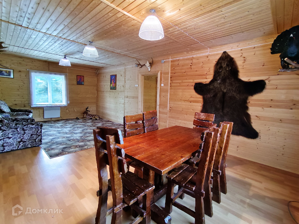 Каждая спальня полностью оснащены под сдачу, гостиную украшает шкура медведя, чучела тетеревов, рога оленя и лося.