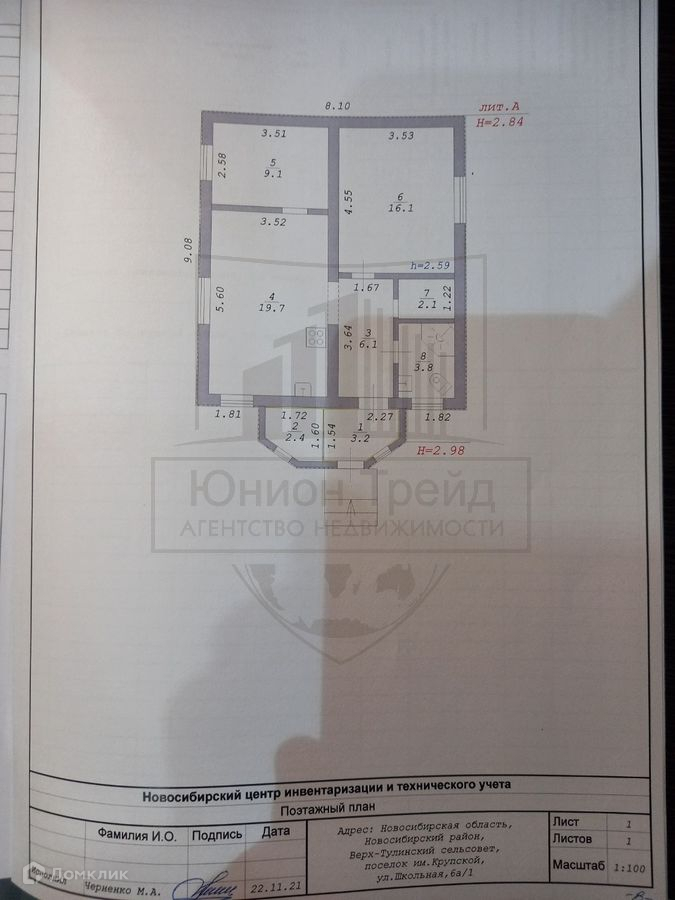 1-этажный дом, 69.5 м2, на продажу в поселке Крупской, Школьная улица, 6А