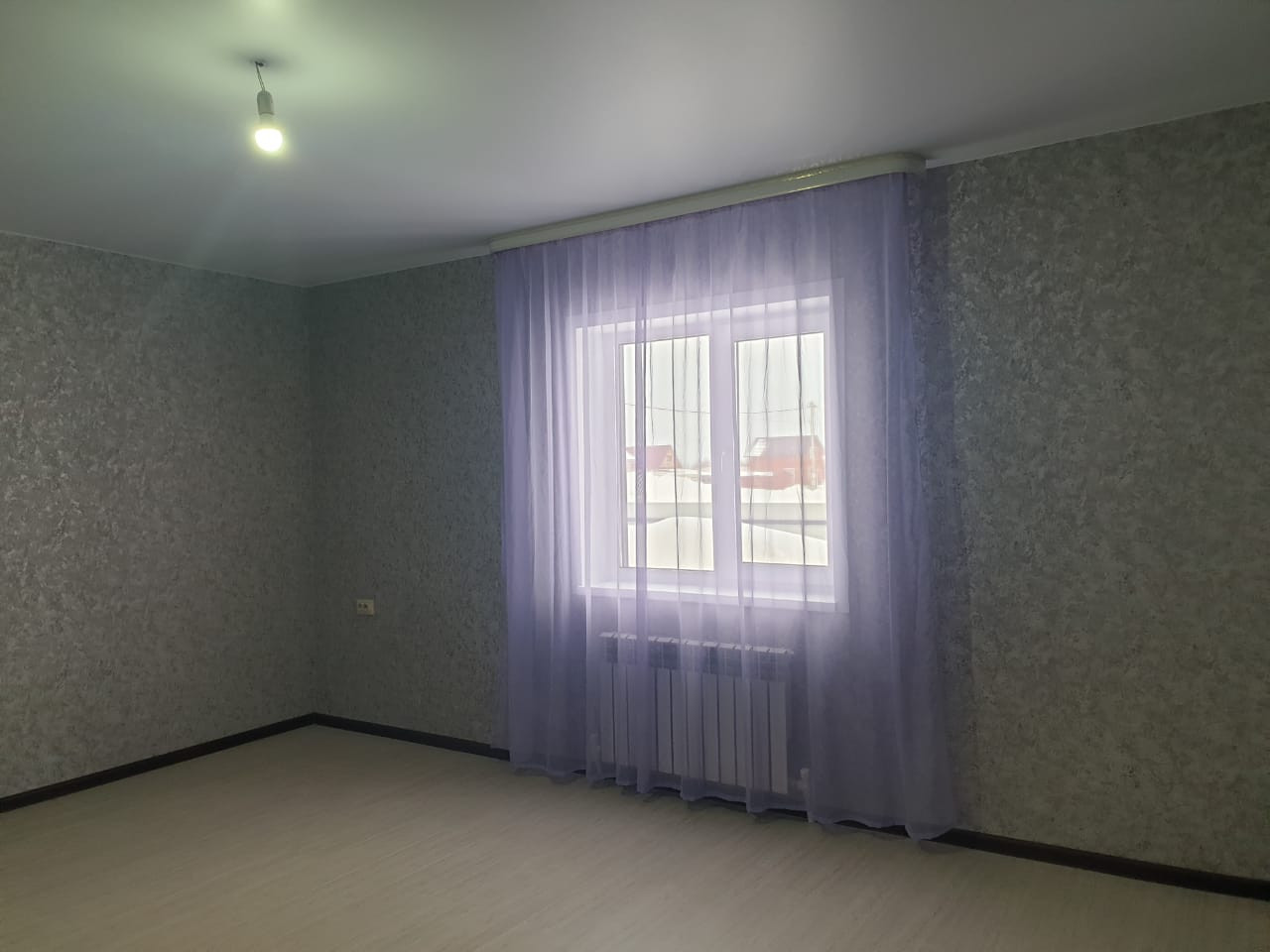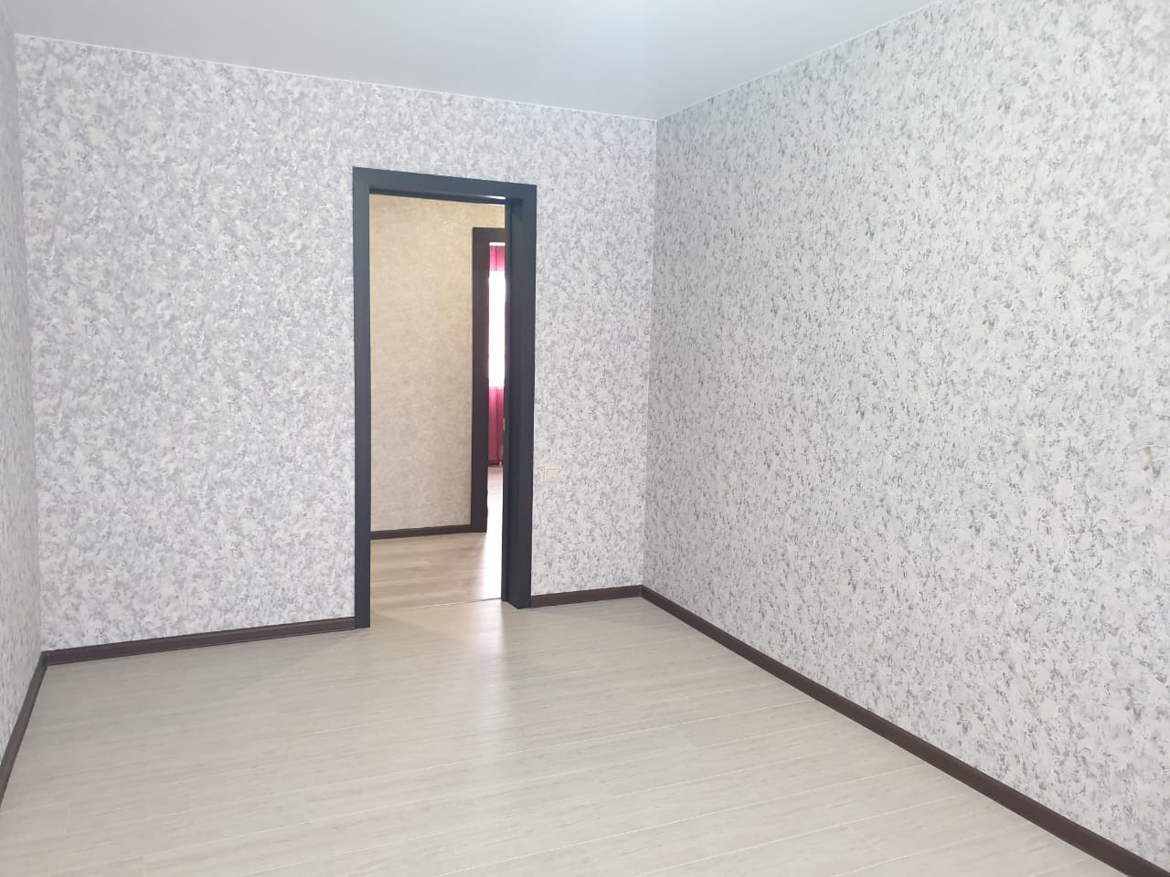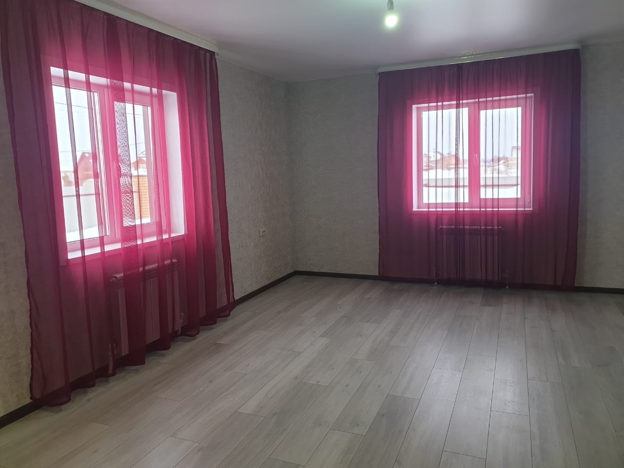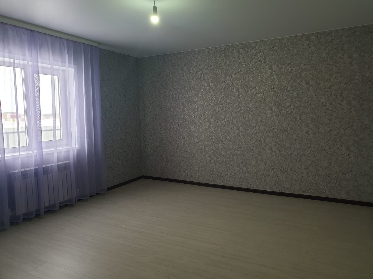 На полу ламинат, натяжные потолки, высокого качества окна и двери.