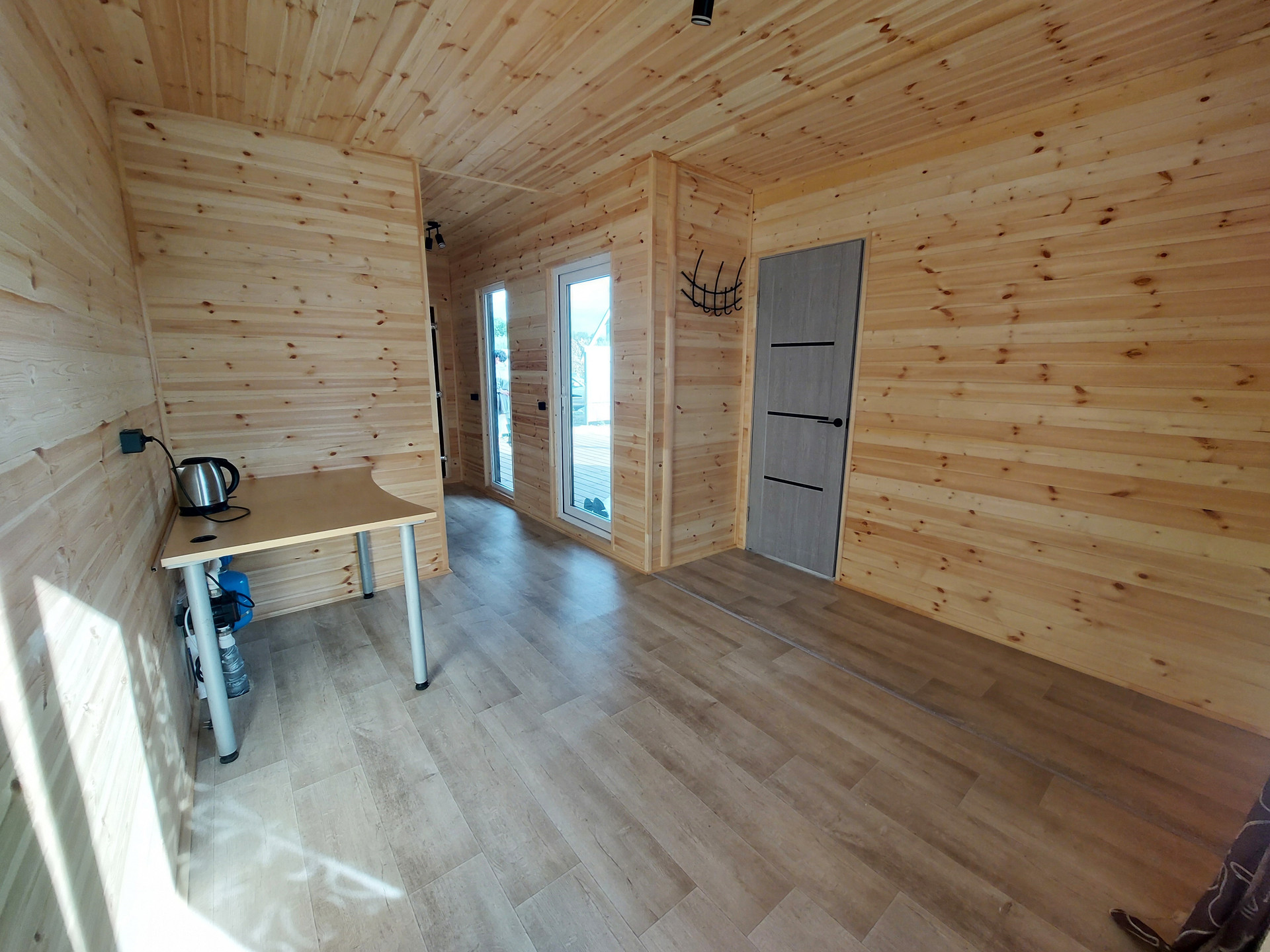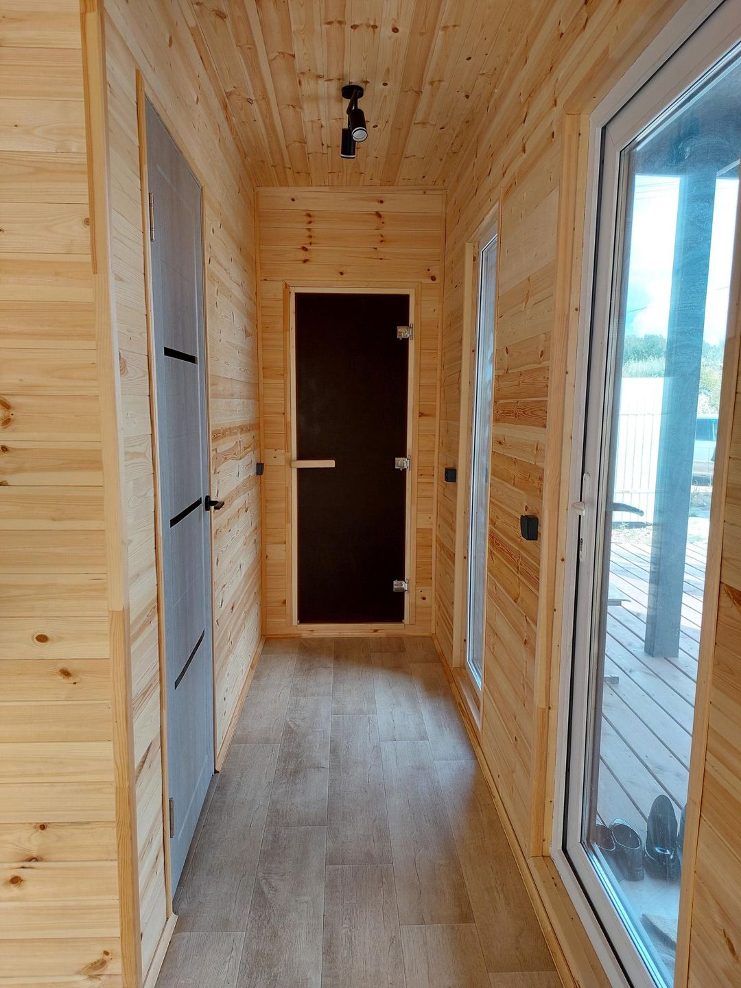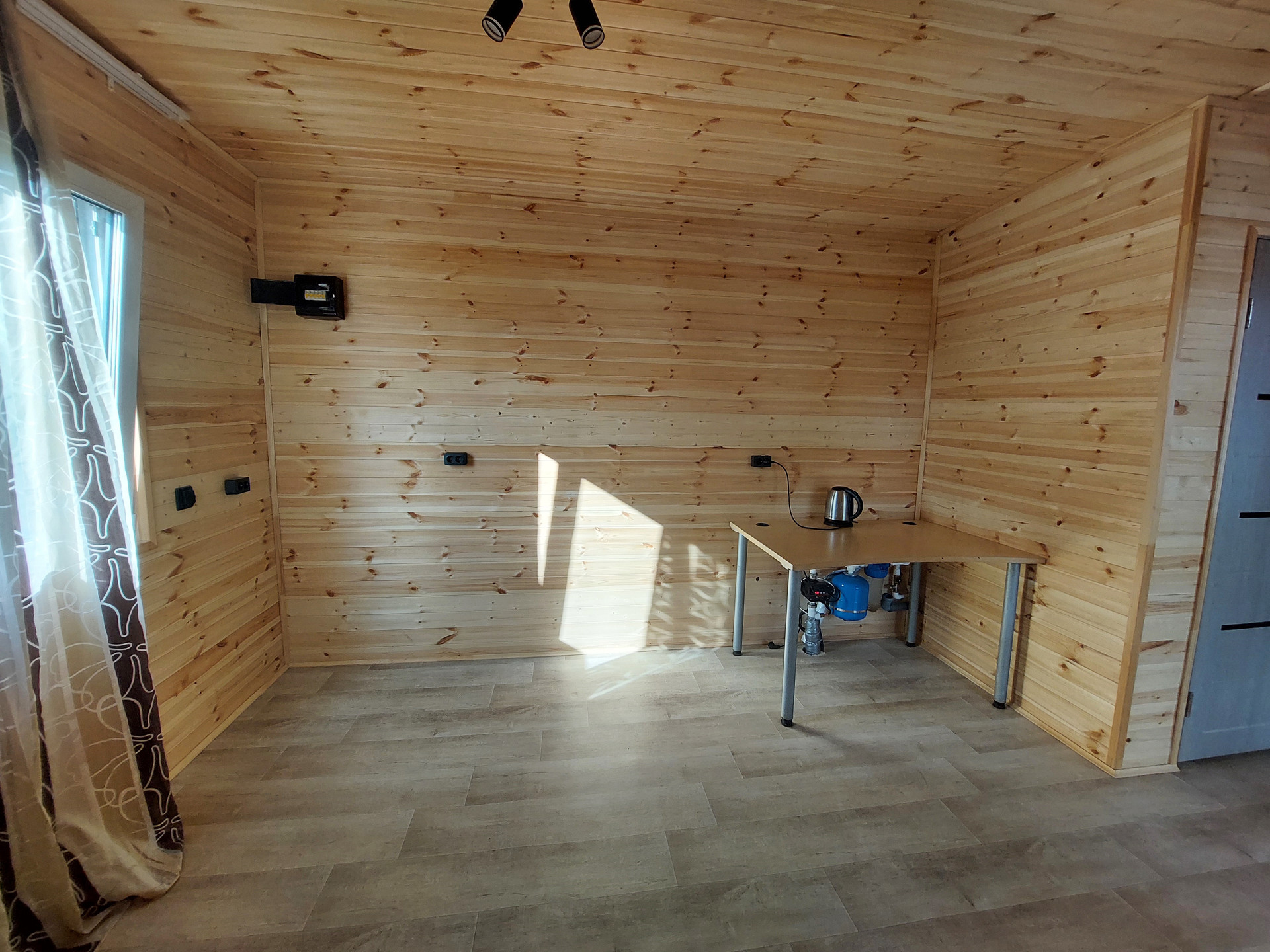 Дом каркасный, фундамент – сваи. Общая площадь дома с верандой 54 кв.м. В доме комната, кухня-гостиная, сан.узел и парная. Канализация – септик, вода артезианская из скважины глубиной 52 метра. Установлена гидросистема для подачи воды из скважины. Горячая вода в доме посредством водонагревателя.  Отопление электрическое – тёплые полы. Строили для себя, не экономили абсолютно ни на чём.