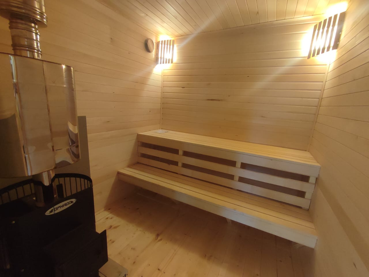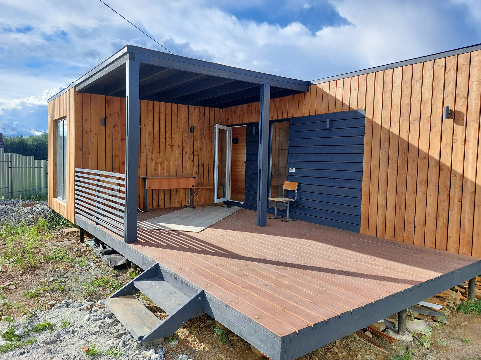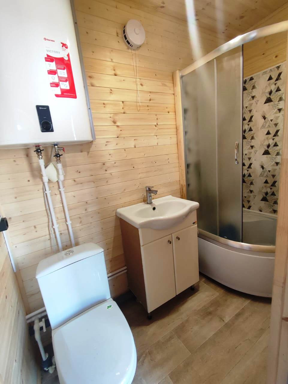 Дом каркасный, фундамент – сваи. Общая площадь дома с верандой 54 кв.м. В доме комната, кухня-гостиная, сан.узел и парная. Канализация – септик, вода артезианская из скважины глубиной 52 метра. Установлена гидросистема для подачи воды из скважины. Горячая вода в доме посредством водонагревателя.  Отопление электрическое – тёплые полы. Строили для себя, не экономили абсолютно ни на чём.