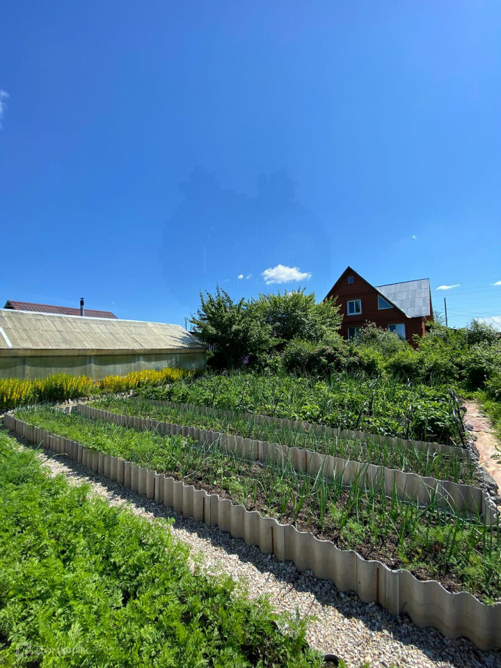 Вокруг дома большой плодоносящий сад - яблони, груши, слива,вишни, смородина, малина, жимолость, крыжовник, много цветов и кустарников, 2 производственные теплицы шириной 4 метра,где выращивают помимо огурцов и помидор - арбузы,дыни.