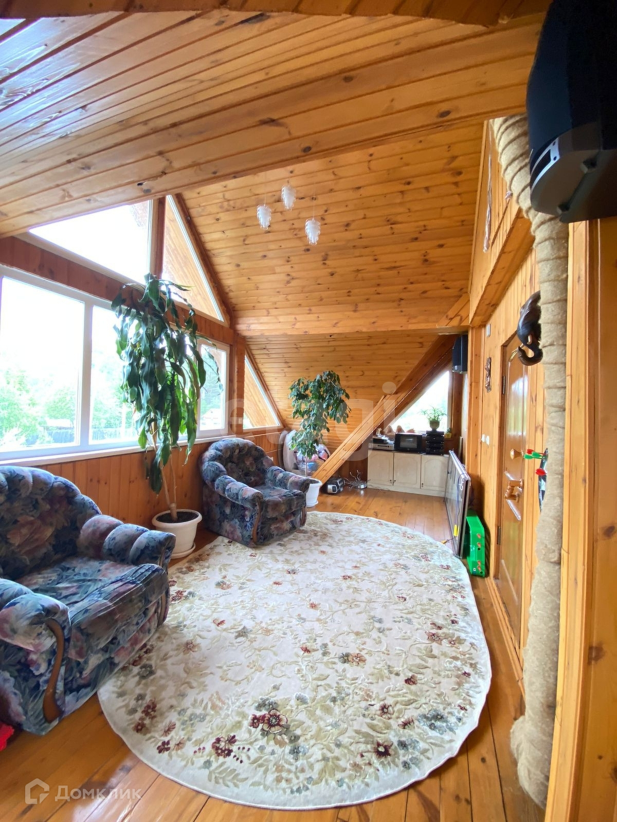 На первом этаже расположены кухня (14 кв/м ), зал с камином (19 кв/м,) спальня (16 кв/м) , санузел . На втором этаже большой зал и 2 спальни.