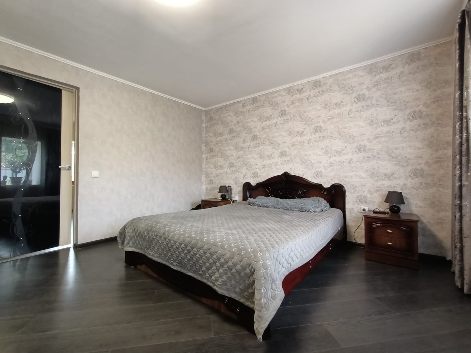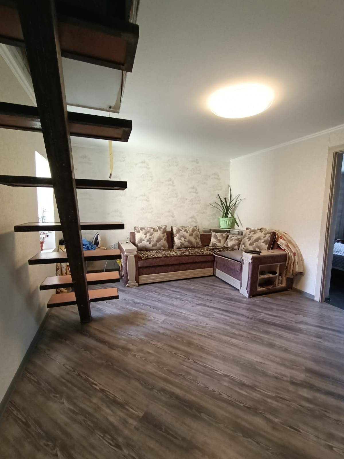 В комнатах ламинат, стены - обои.