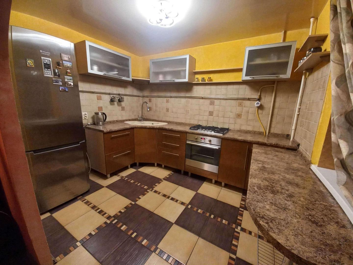 Кухонный карнитур остаётся новым собственникам( холодильник Ariston,варочная поверхность Hansa,духовой шкаф Electrolux).