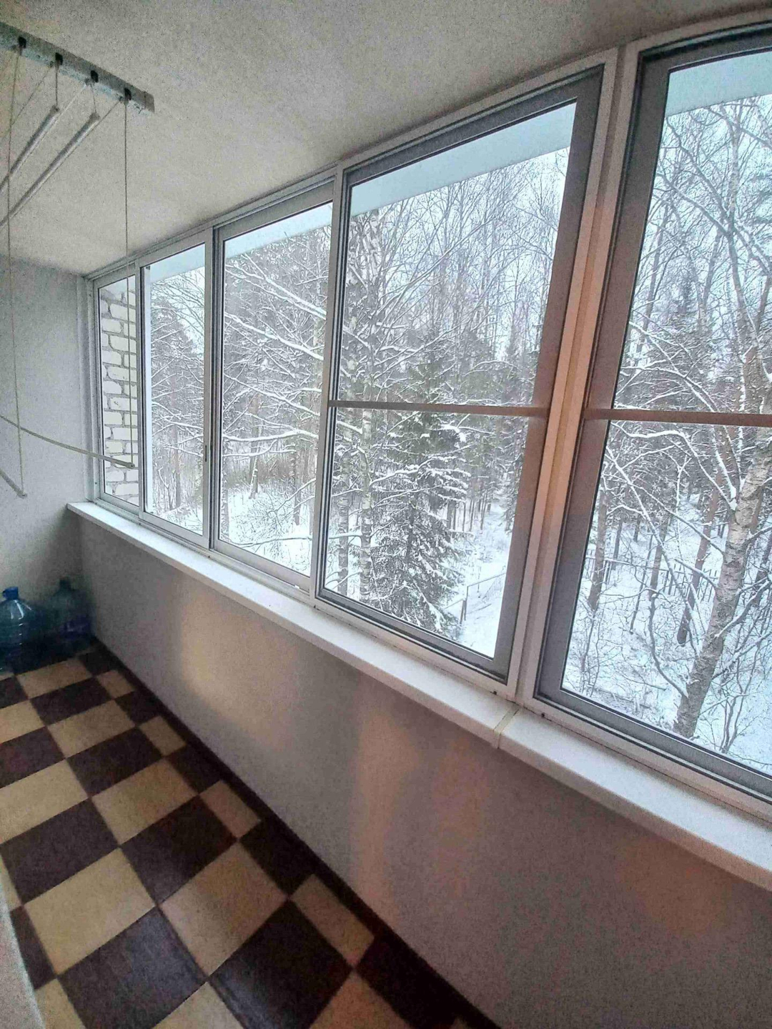 Лоджия 6 метров застеклена аллюминием и обшита.
