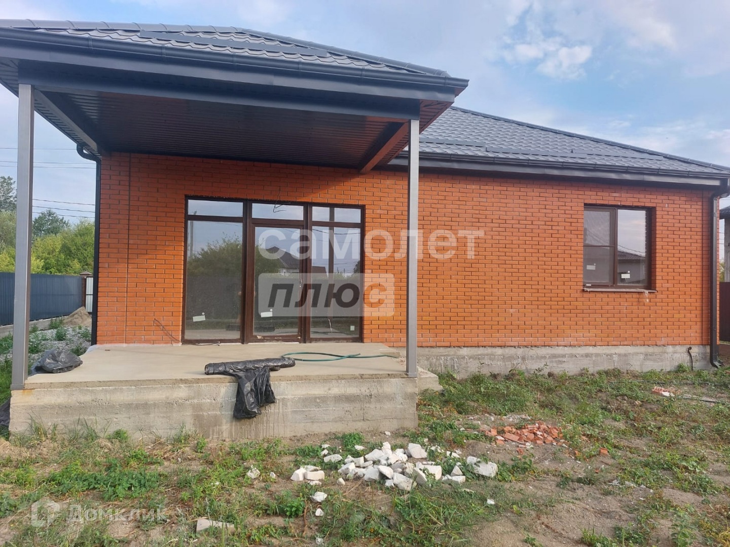Над верандой навес.