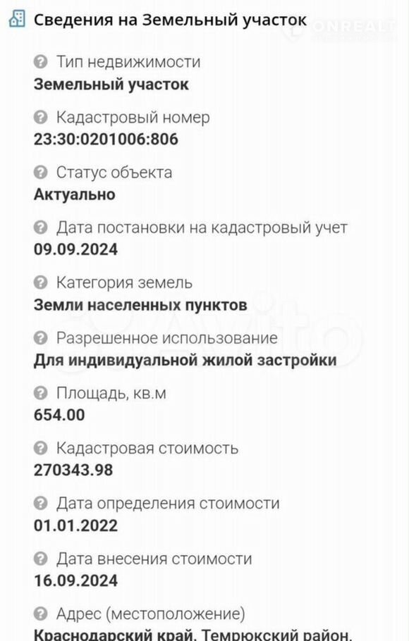 кадастровый номер 23:30:0201006:806