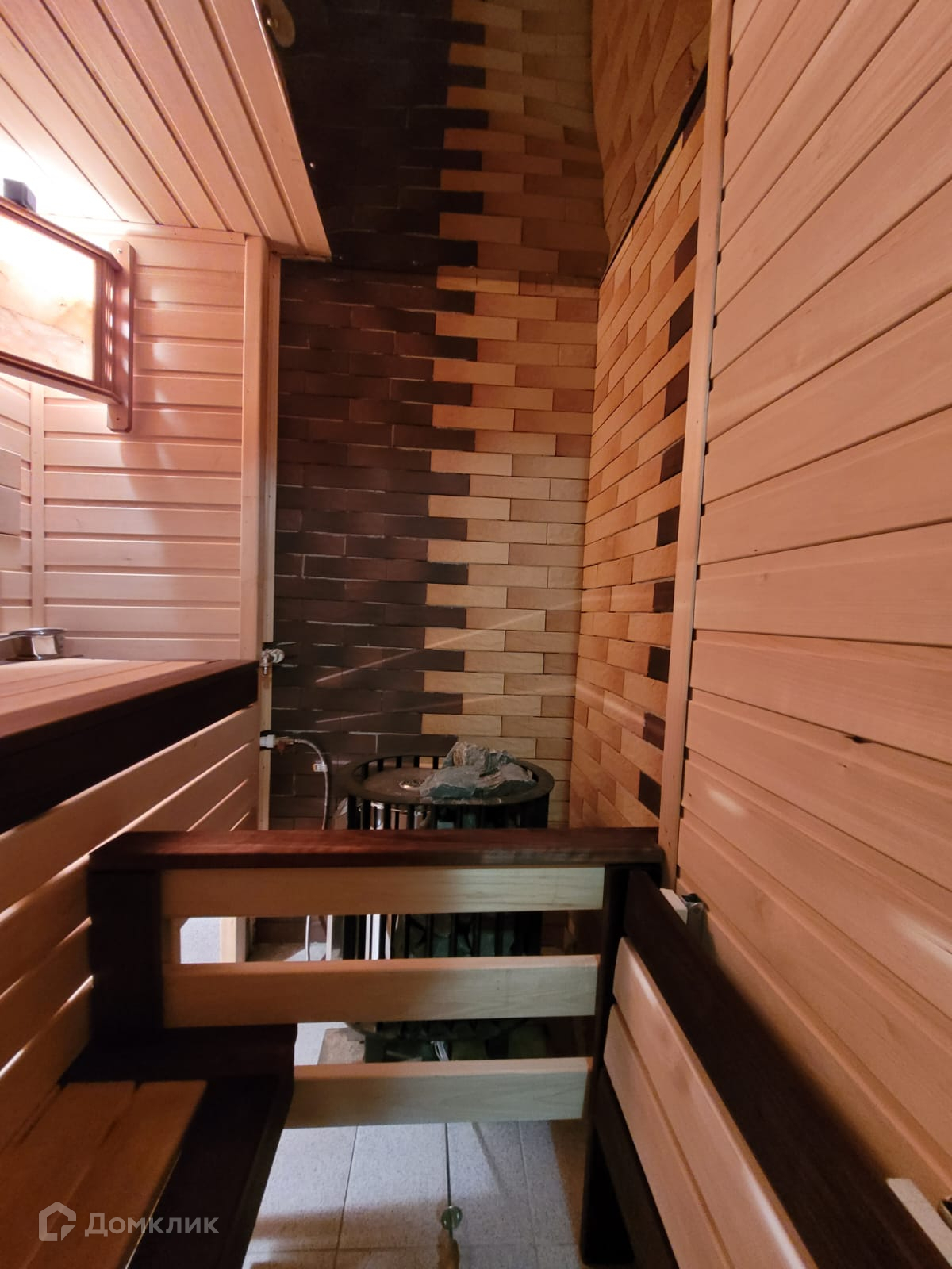 Отделка в доме чистовая, на полу линолеум, на стенах поклеены обои, установлены межкомнатные двери. Заведены все коммуникации: ГАЗ, электричество 380 Вт, центральное водоснабжение, а так же имеются 2 скважины, отопление АОГВ, канализация (шамбо). Сауна отапливается отдельным электро котлом.