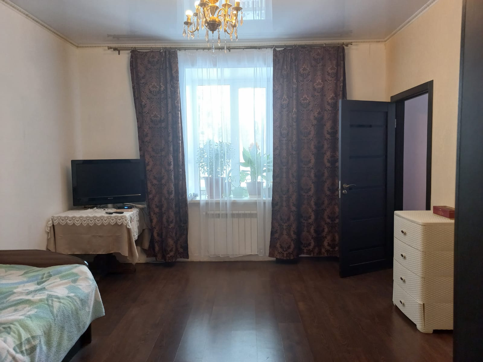 В квартире 3 комнаты и большая гостинная с кухней, просторный санузел с современной сантехникой, везде сделан отличный качественный ремонт.