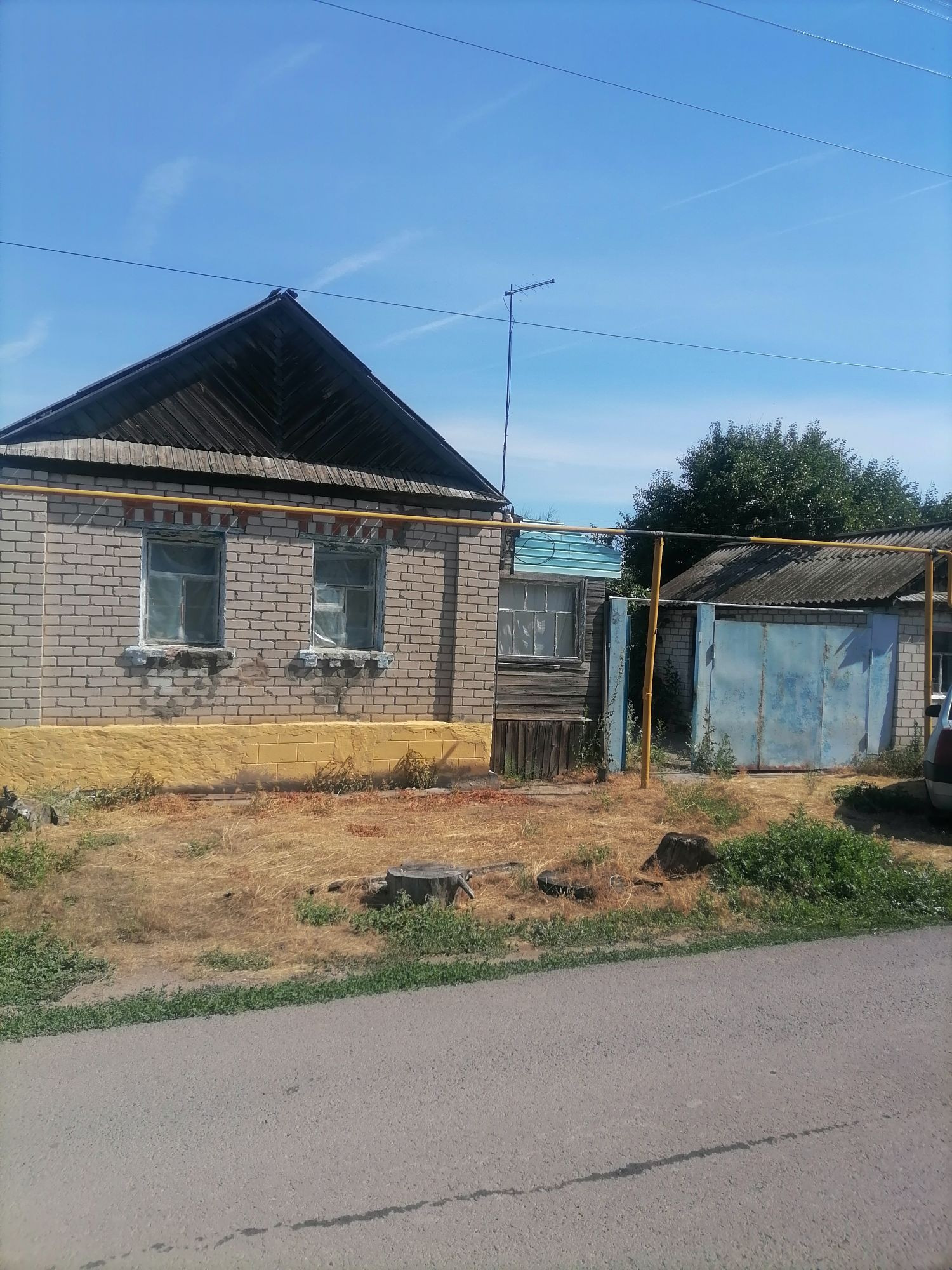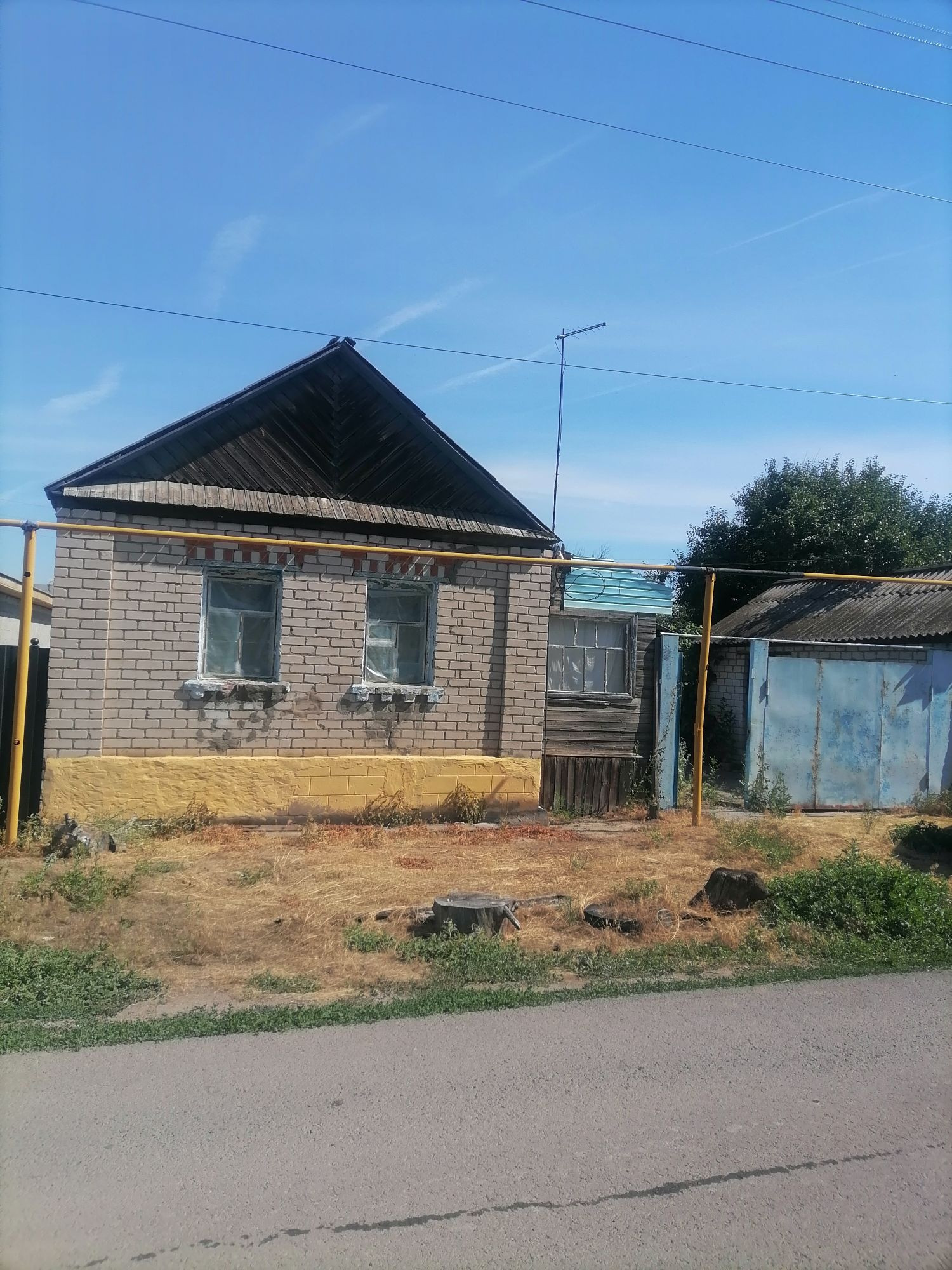 Деревянный дом обложен кирпичем, во дворе летняя кухня тоже из кирпича, газ проходит прямо по фосаду дома, есть скважина, отопление, участок большой и чистый, подъезд к дому асфальт
