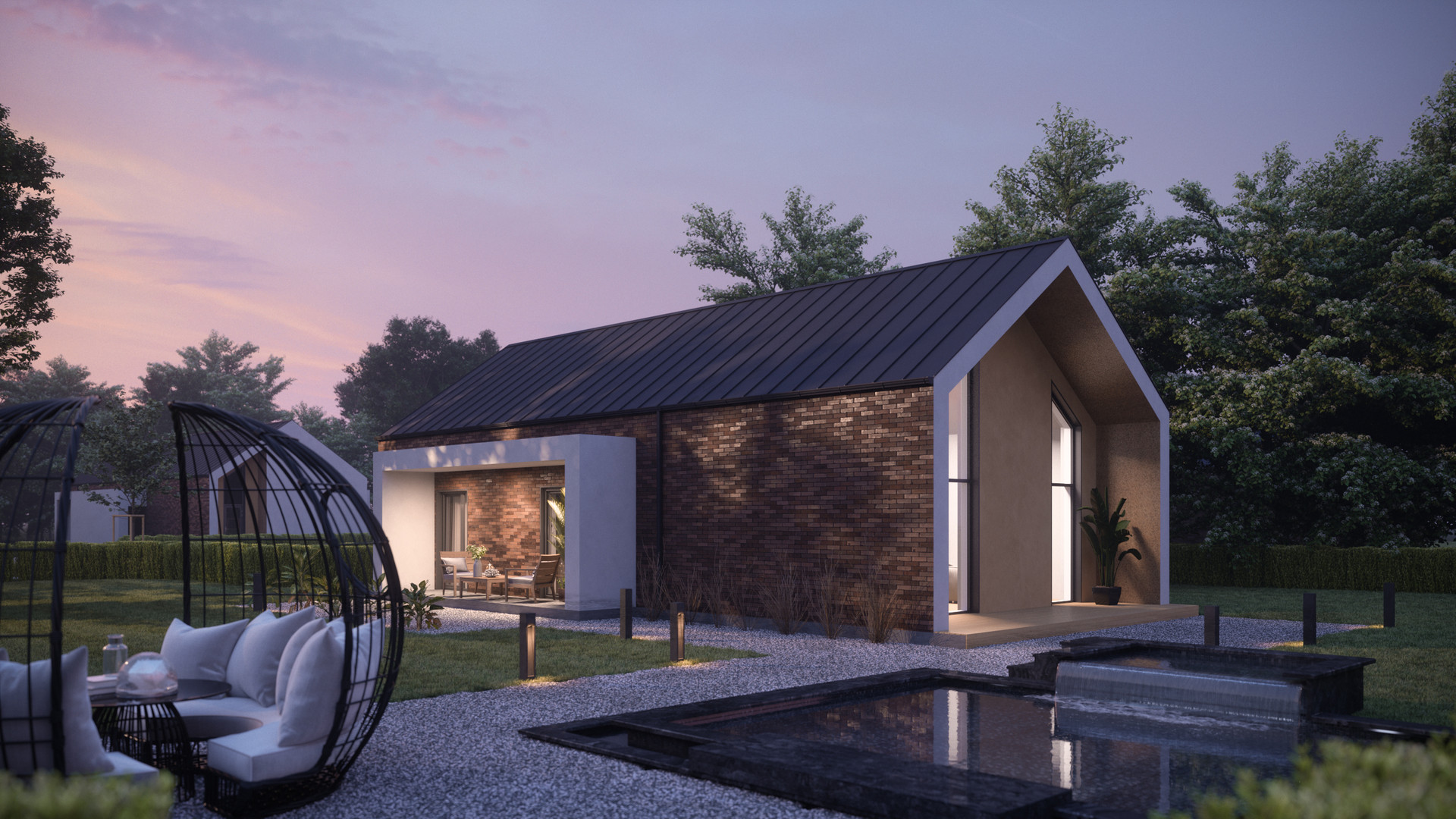 ✅ Современный вид кровли, необычный и интересный дизайн террас, сочетание эксклюзивных материалов в отделке делают дом невероятно стильным;