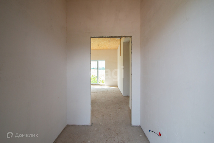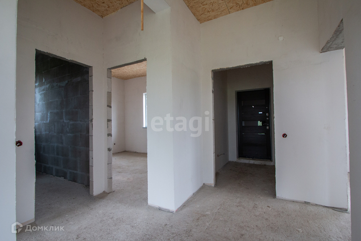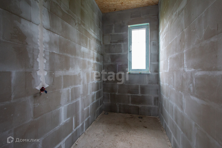 Материал стен- Газосиликатный блок. В доме стены оштукатурены, шпаклеваны. Фасад утеплен и покрыт декоративной штукатуркой.