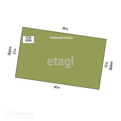 Размер участка – 930 м2 (9,3 сотки).
