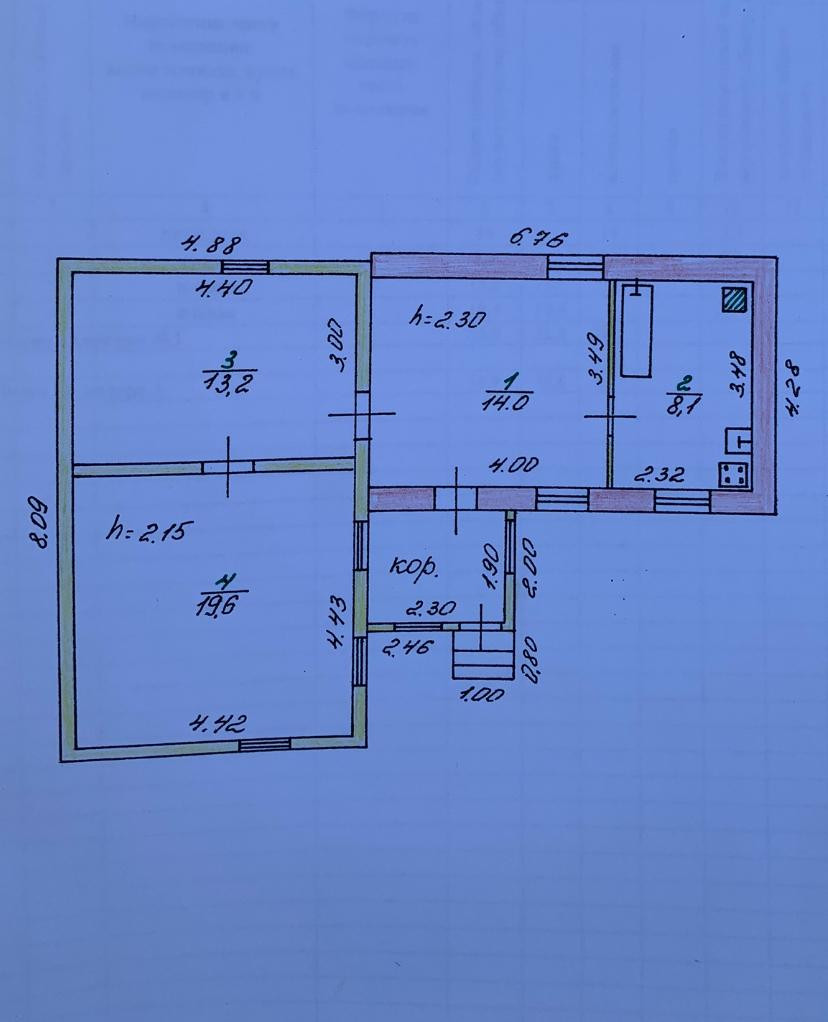 Общая площадь 54.9 м2