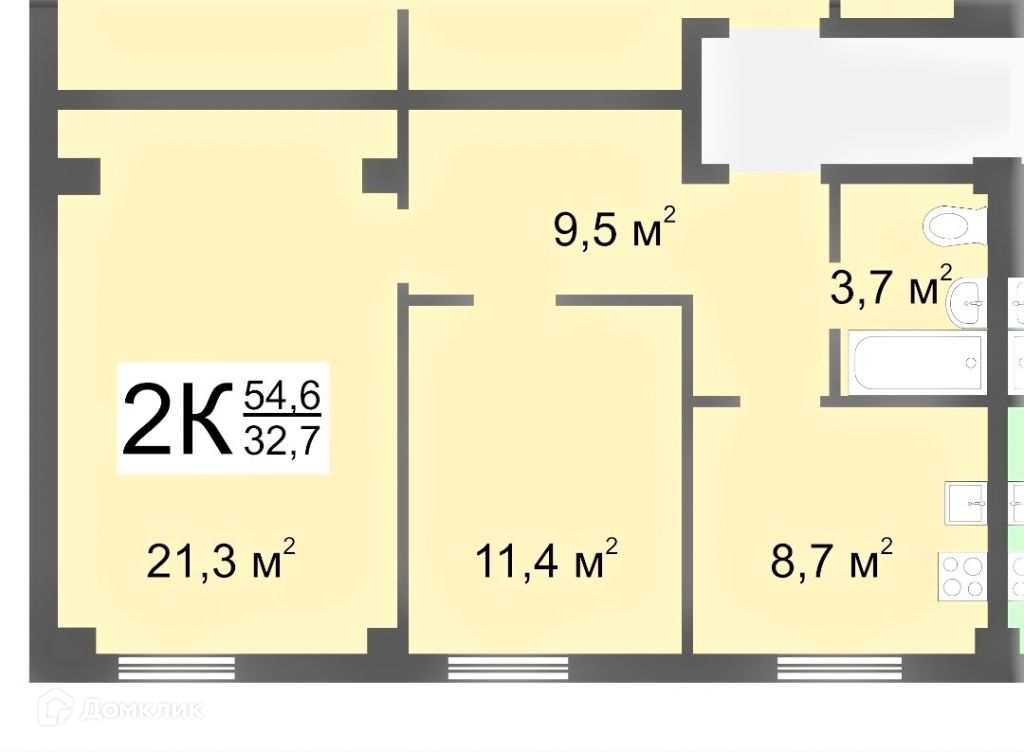 Общая площадь 54.6 м2