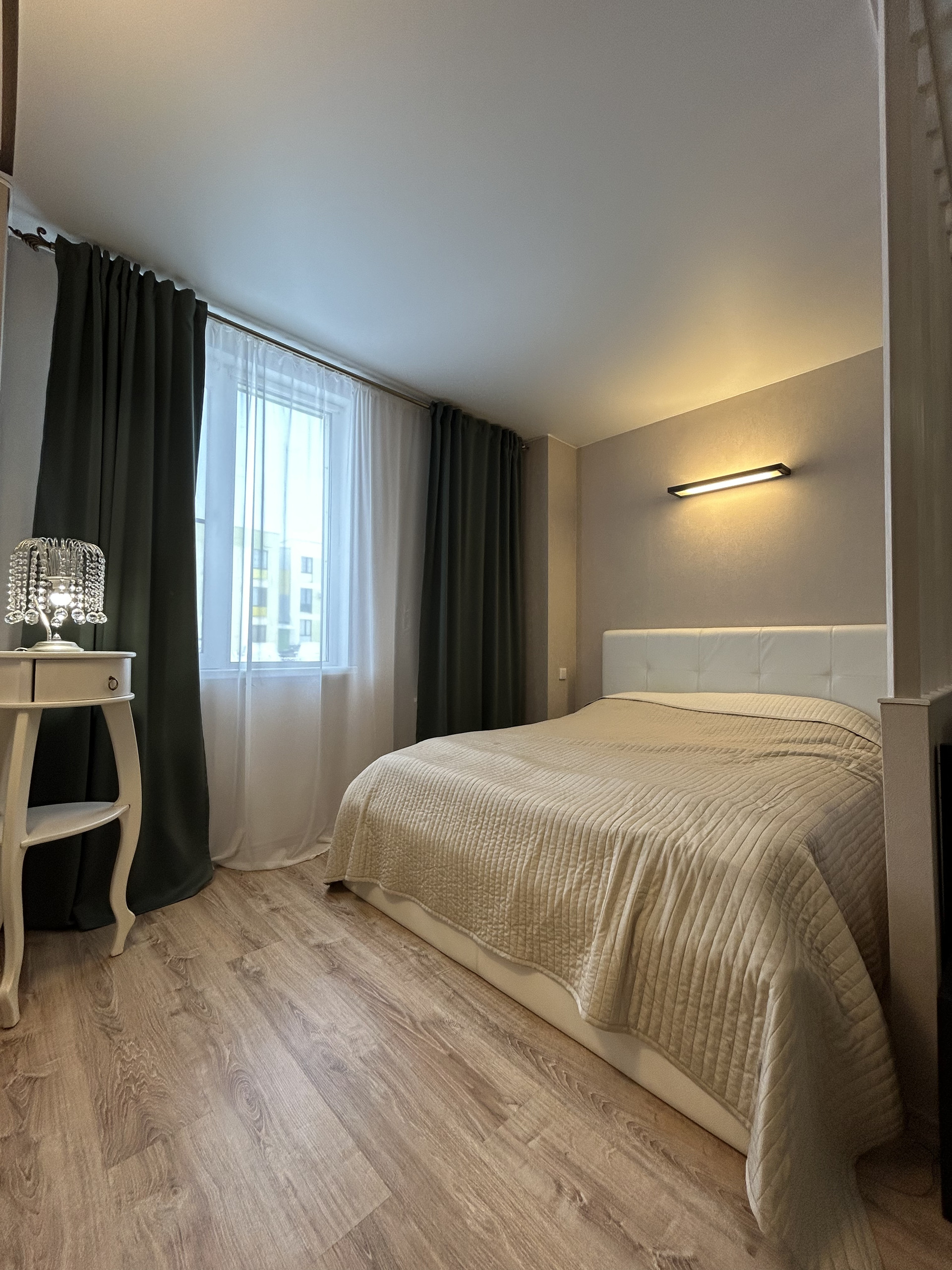 Так же остаются все люстры и гардины.