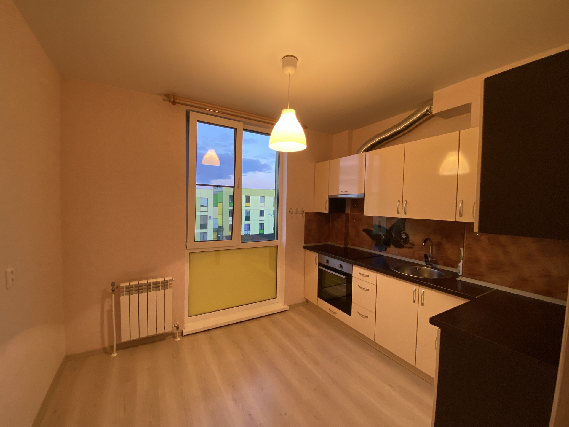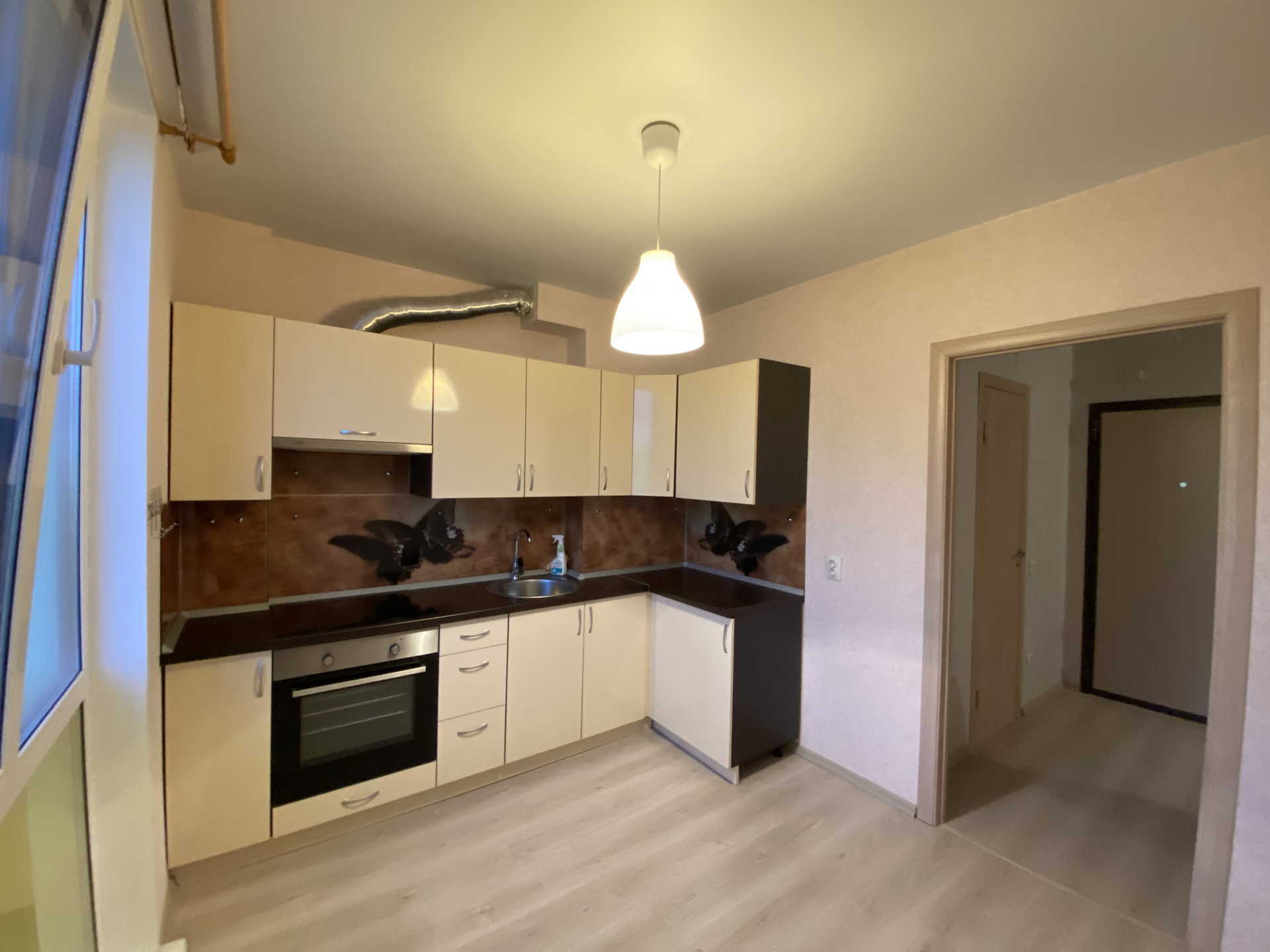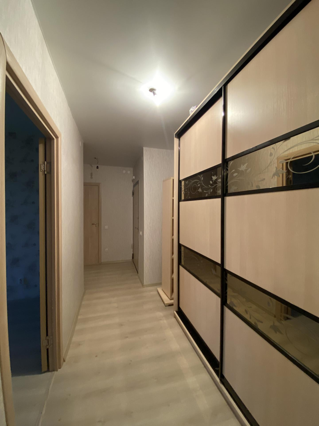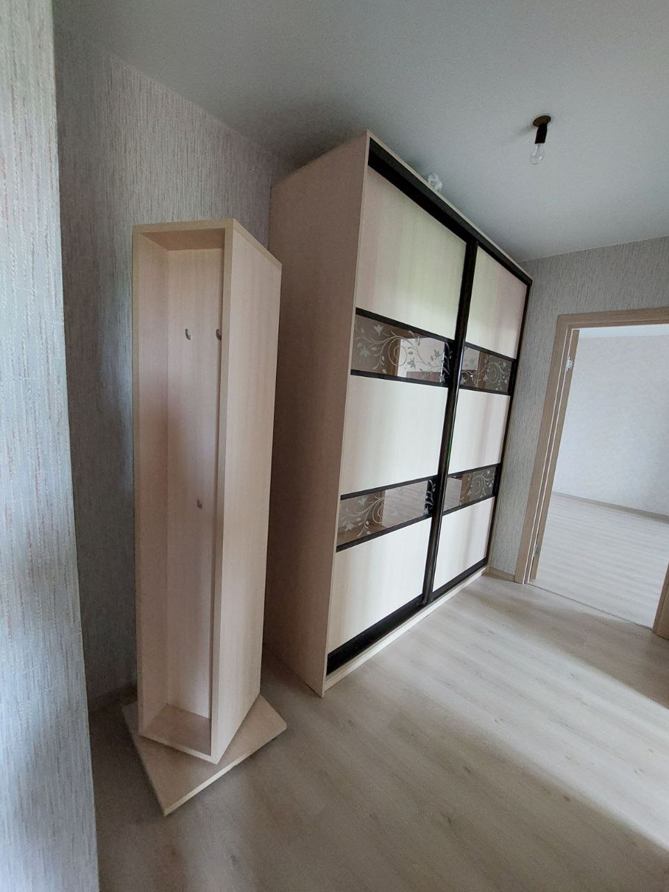 В квартире остаётся прихожая-зеркало, шкаф купе, стенка, люстры, кухонный гарнитур с встроенной техникой (духовой шкаф, варочная панель, вытяжка).