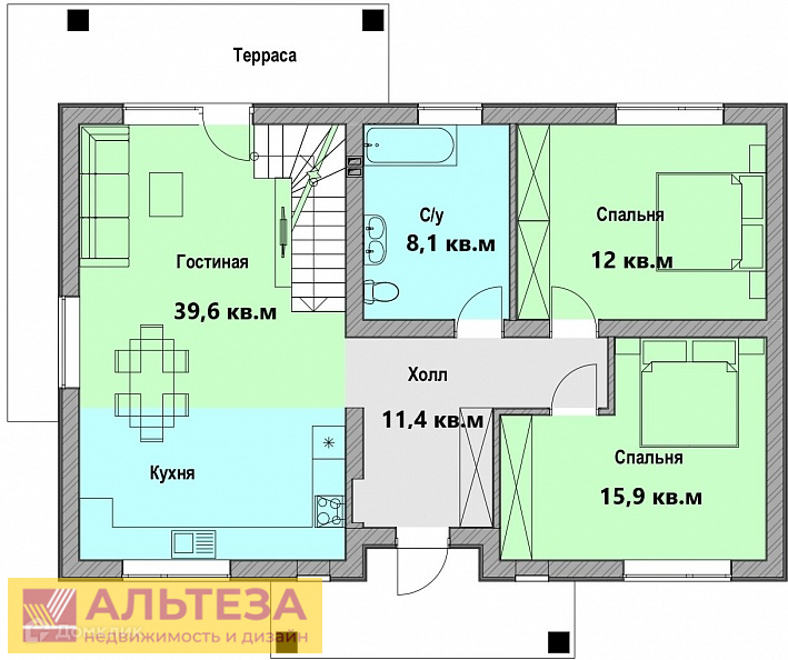 Общая площадь данного дома 146 кв.м: 3 отдельные спальни, кухня-гостиная и 2 санузла