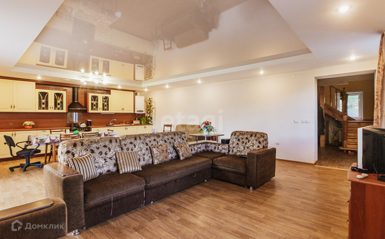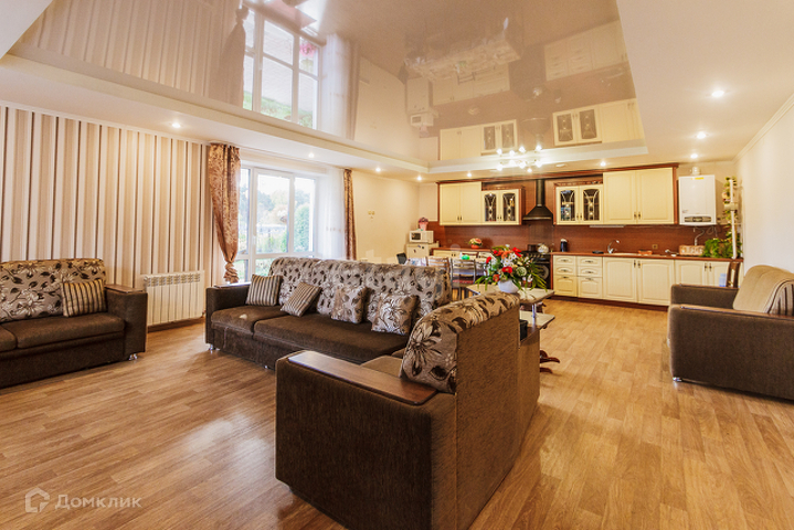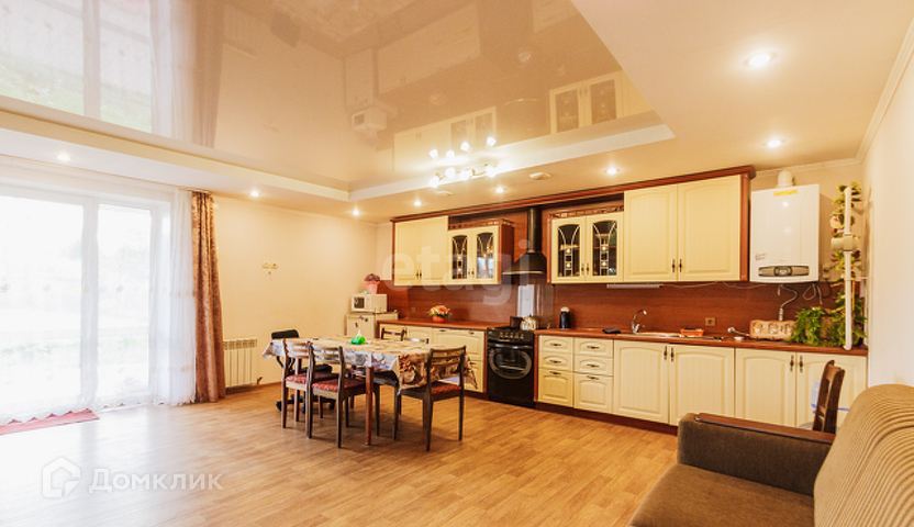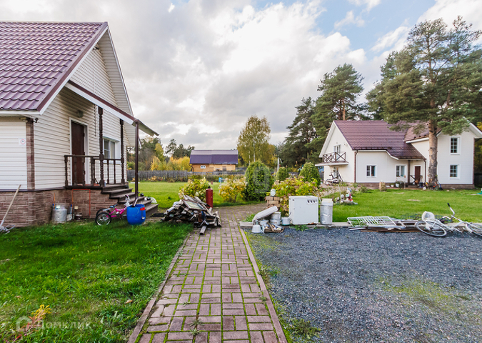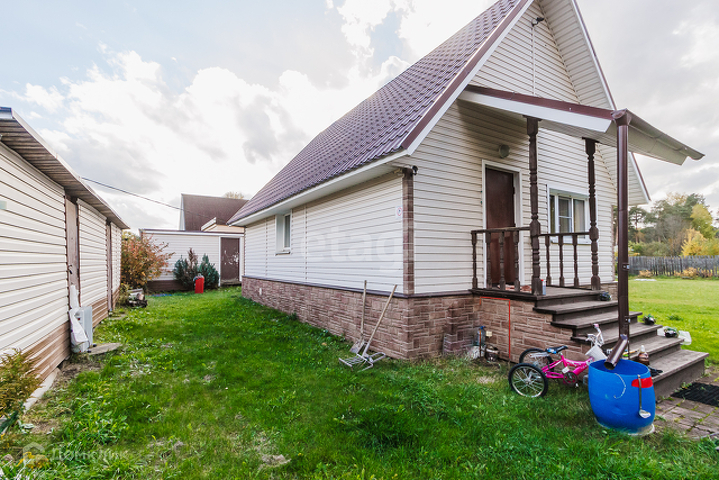 Дом жилой, ремонт сделан, мебель и технику остается по договоренности. На первом этаже большая кухня-гостинная, санузел, кабинет и прихожая. В гостинной панорамные окна с выходом на террасу. Второй этаж- три спальни и холл. В большой спальне выход на балкон.