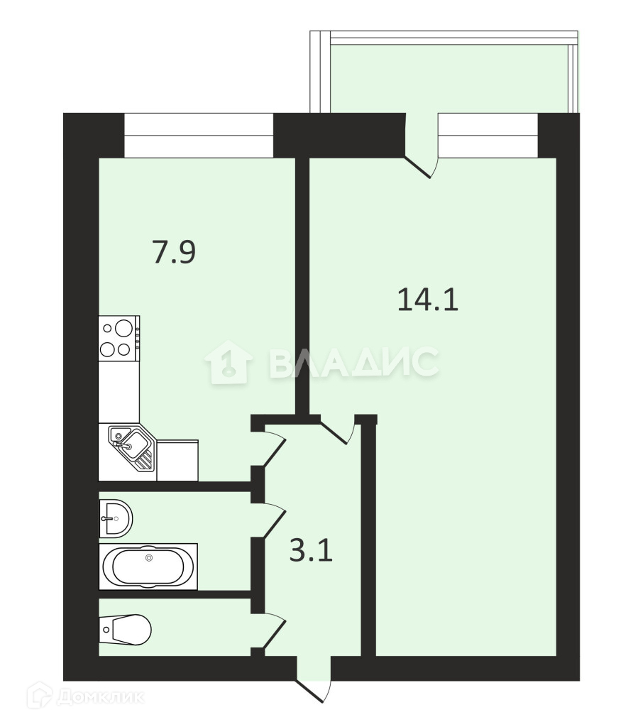 Общая площадь 30.3 м2