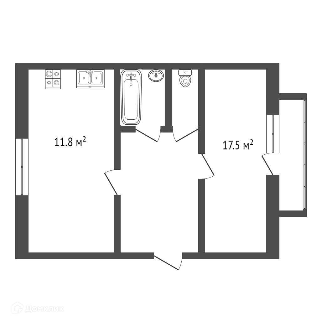 Жилая площадь 17.5 м2