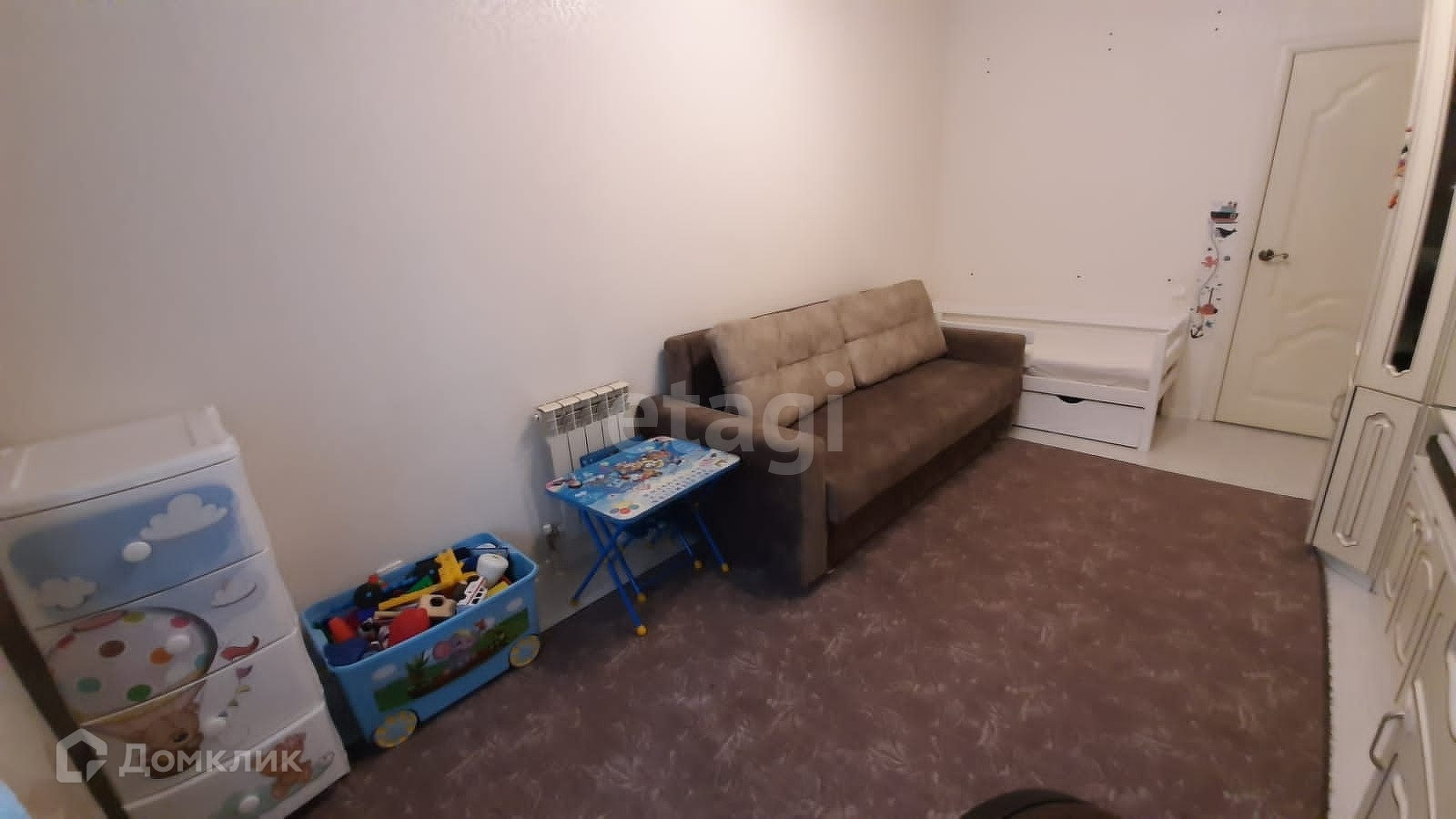Жилая площадь 27,6 м2. В большой комнате находится стенка в таком же стиле, в ней имеется место для закрепления телевизора, рядом компьютерный стол с навесными полками, имеются диван, детская кровать с стелажом. Во второй комнате имеется диван, белый комод, раскладной стол, большой бежевый шкаф во всю стену. Дверь в комнату не устанавливалась. В прихожей имеются большой белый комод и угловой шкаф, пол плитка. Заходя в прихожую, прямо по направлению расположены ванная комната и туалет с белыми дверями. Имеется ванная, большое зеркало, широкая раковина и шкафчики под ней, плитка молочная с бежевым рисунком. Туалет в бежевой плитке. Минимальная слышимость в квартире. Подъезд в салатовом цвете, с зеленью на подоконниках. Дружелюбные соседи.