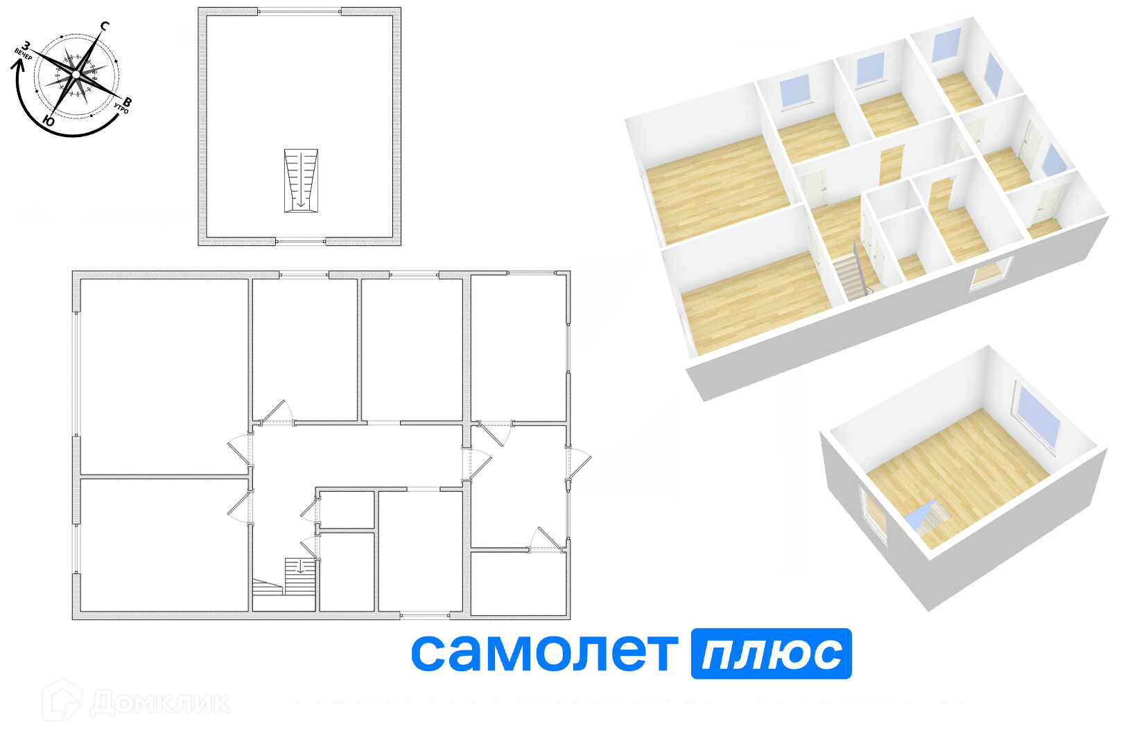 Первый этаж: 3 комнаты + столовая и кухня; раздельный сан узел.
