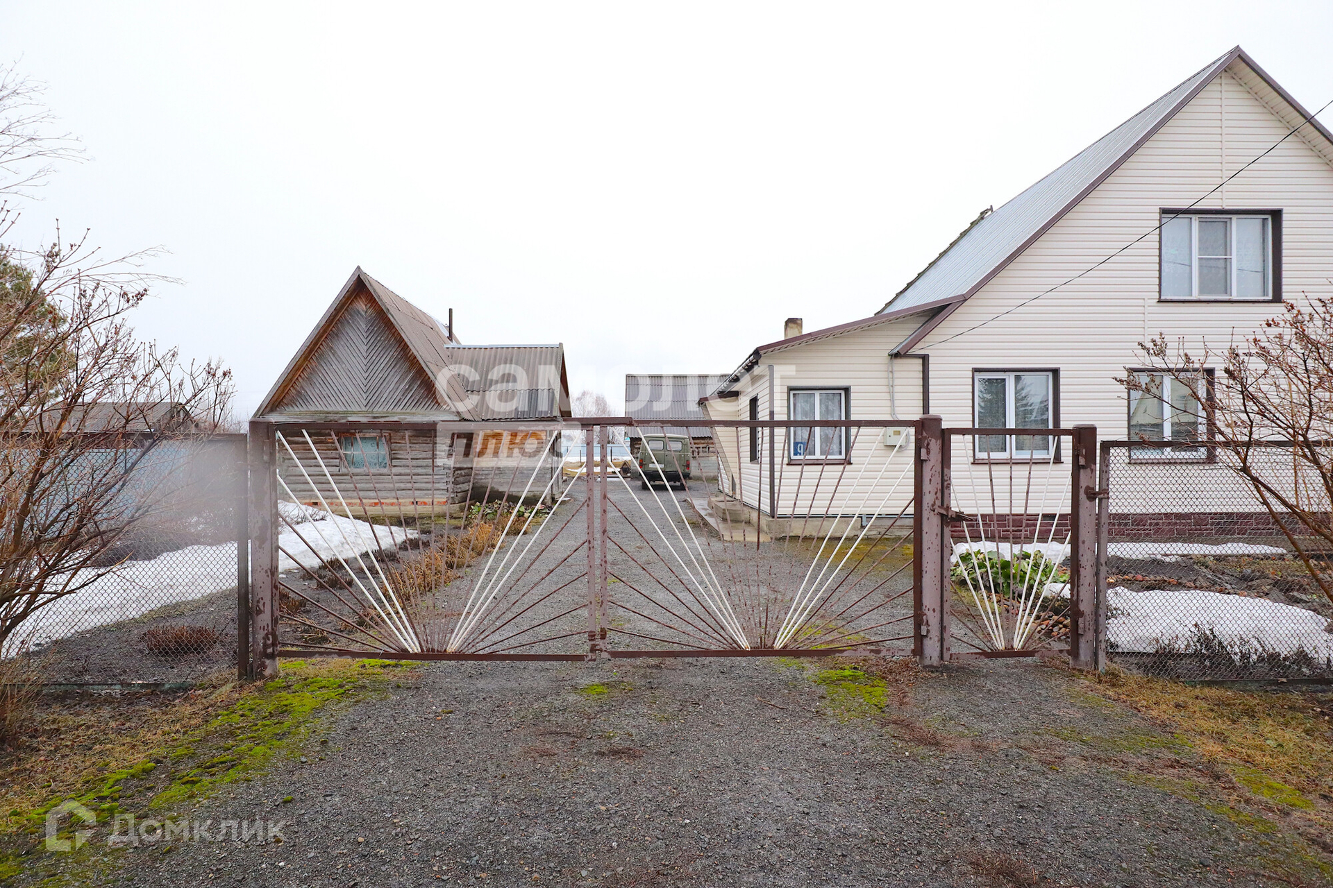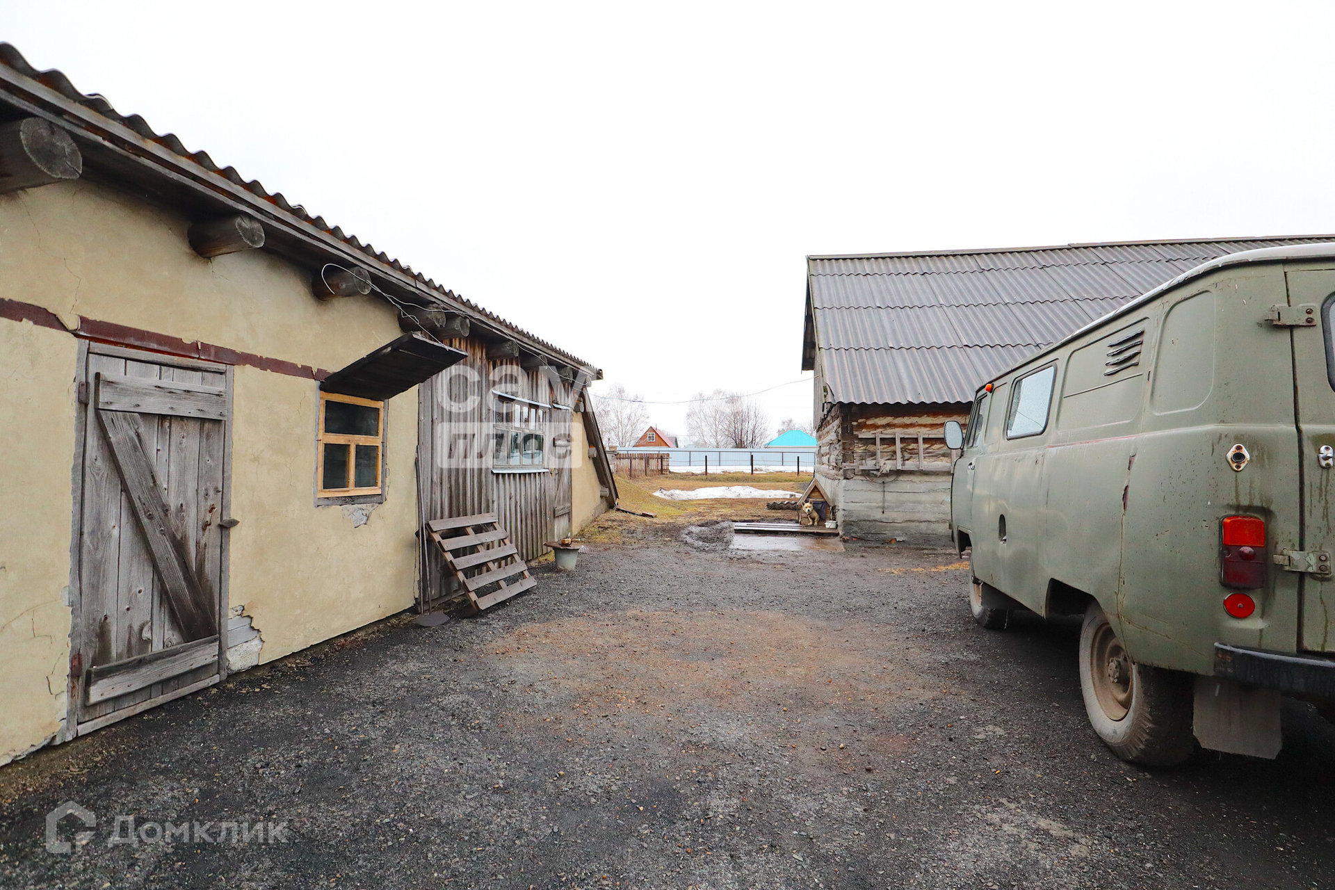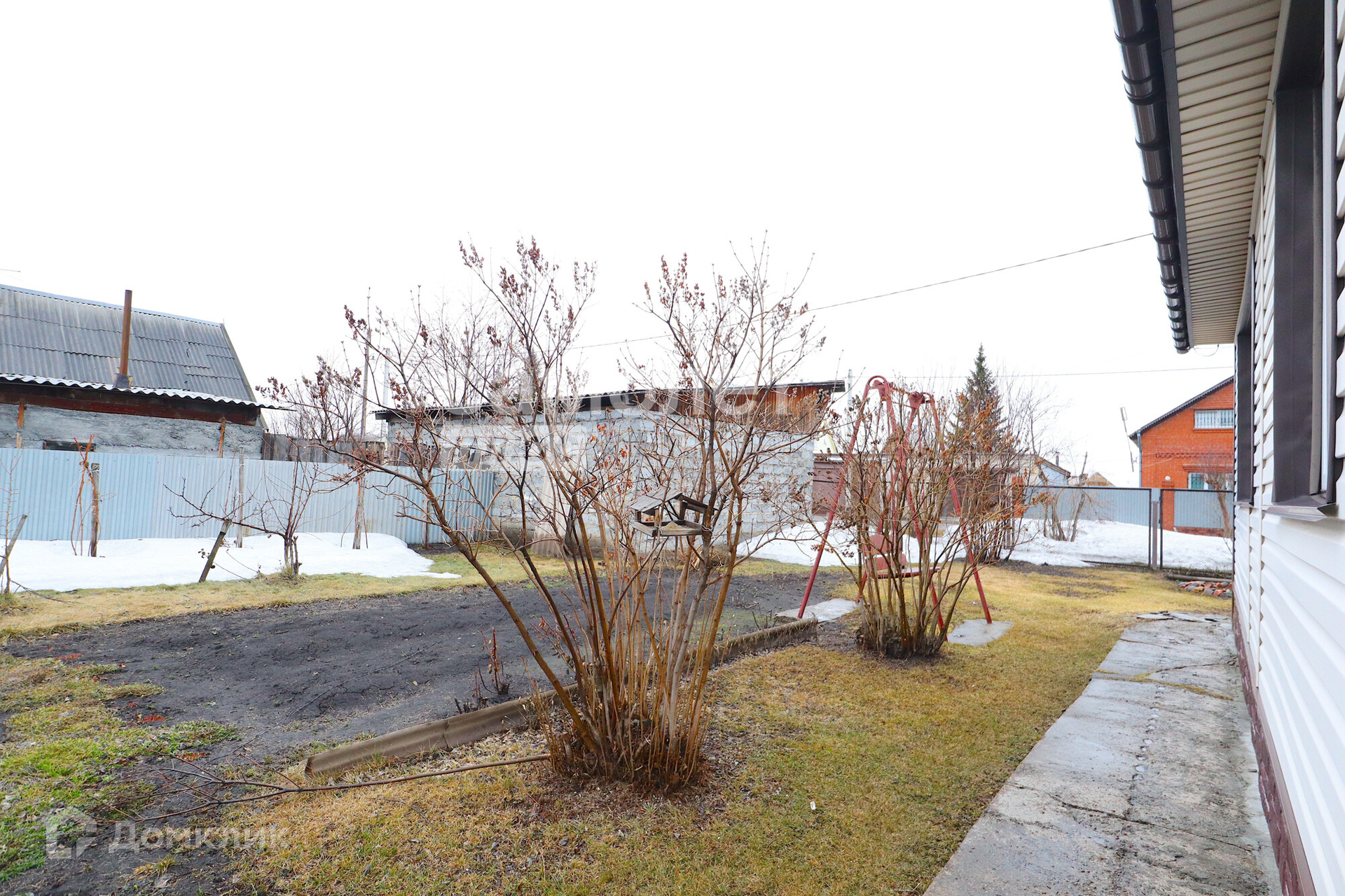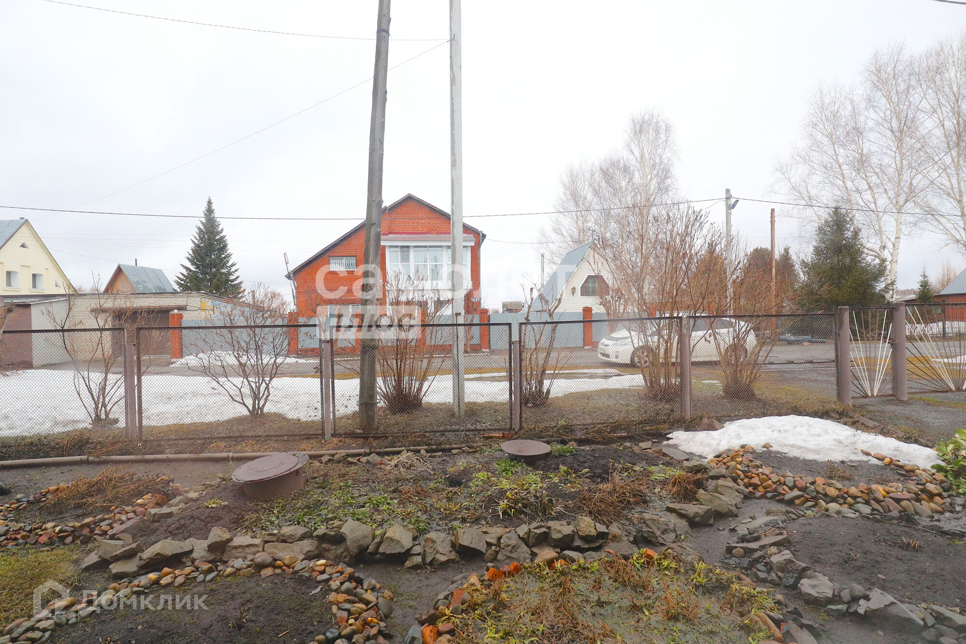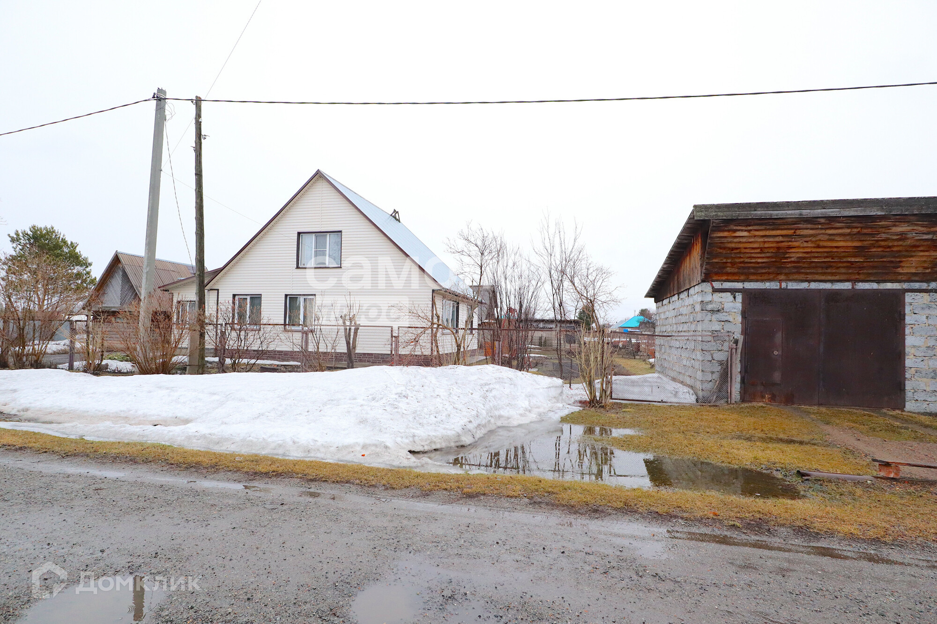 На участке есть постройки: кирпичный гараж, баня, углярка, дровник.