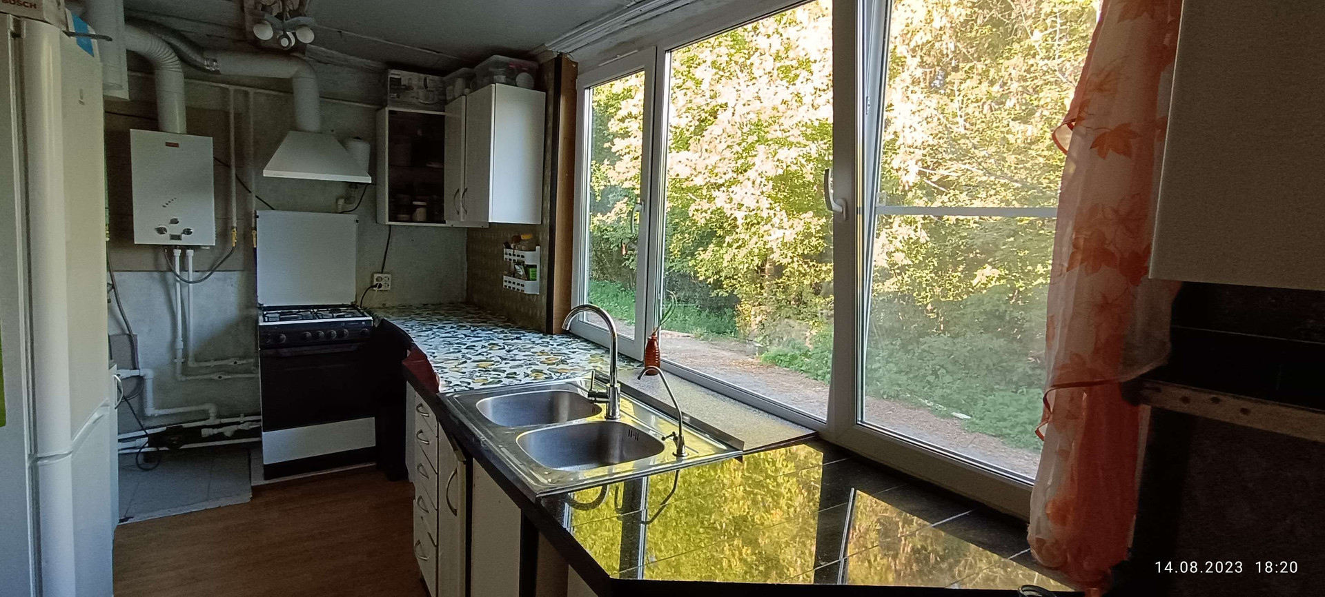 В 2016г пробурили скважину 58м. 2021г провели газ. Имеется сливная яма. Вода холодная, горячая от газовой колонки. Отопление газовое от напольного котла, радиаторы по всему периметру дома - стальные, трубы пп, замкнутая система с небольшим расширителем и насосом. Туалет и ванная комната раздельные. Окна вкруг ПВХ. Веранда 10м² обшита металлопрофилем, окна и дверь ПВХ. Проводка вся заменена в 2017г. Дом деревянный. Комнаты обшиты изнутри ОСБ-плитами, отделка обои. Полы деревянные старые, но крепкие. В кухне временно положен ламинат, но требуется перестилать, т. к. пол неровный. На кухне требуется ремонт потолка и стен, т. к. там старая и неровная фанера. Снаружи дома в ближайшие несколько лет требуется обшить дом, кроме лицевой кухонной стены. Она обшита металлопрофилем. Есть погреб, холодная комната над которым обшита деревянными реечными панелями на фото. Но мы не пользовались им, т. к. крутая металлическая лестница туда спускается. Земля чернозëм. С 2018 года мы ничего не садили и не возделывали. Участок будет интересен тем, кто любит и умеет заниматься земледелием и хочет под себя посадить большой сад и/или огород. Я в этом полный профан и у меня получается только выращивать обалденные лопухи и крапиву, а потом без конца их косить!) На участке растут только три старые яблони и одна старая слива, которые не интересны, как сорта и лучший вариант их спилить. В 10 минутах ходьбы есть хороший небольшой пруд. В жару ходим ежедневно купаться. Есть любители там порыбачить.