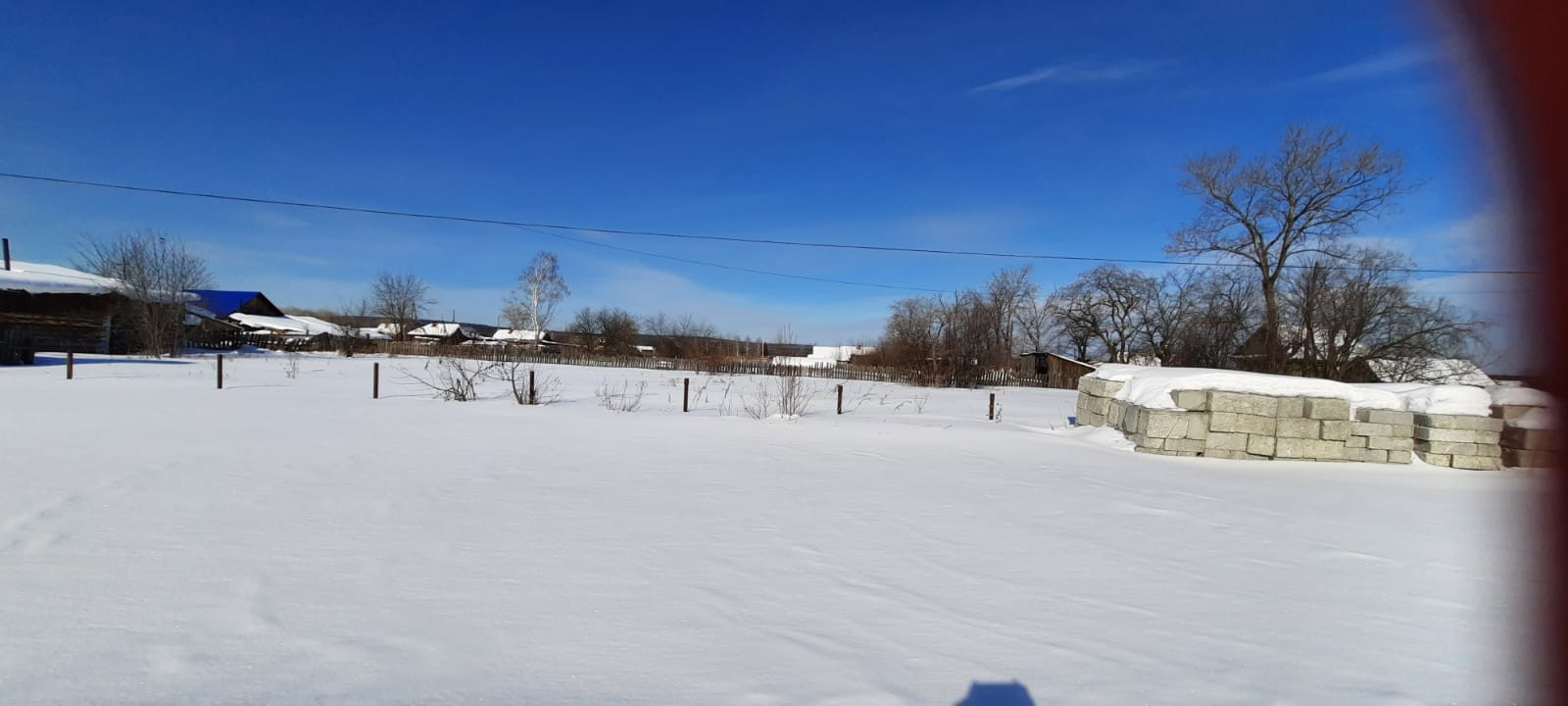 Участок ровный. Есть электричество. Столбики для забора.