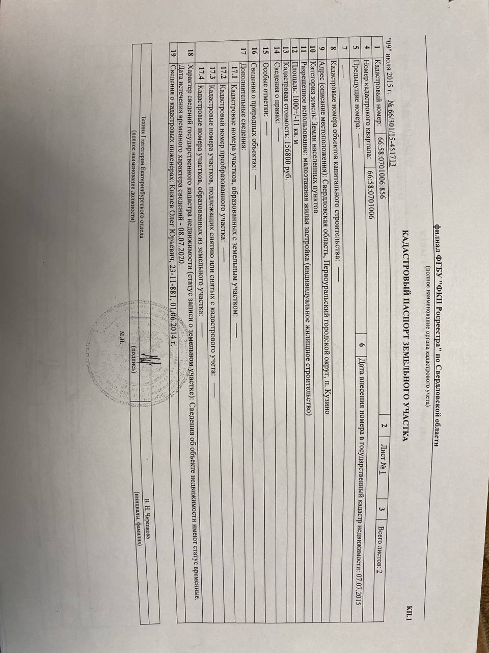 Участок под ИЖС, 10 сот. на продажу в поселке Кузино, улица Генерала Недоростова, 36