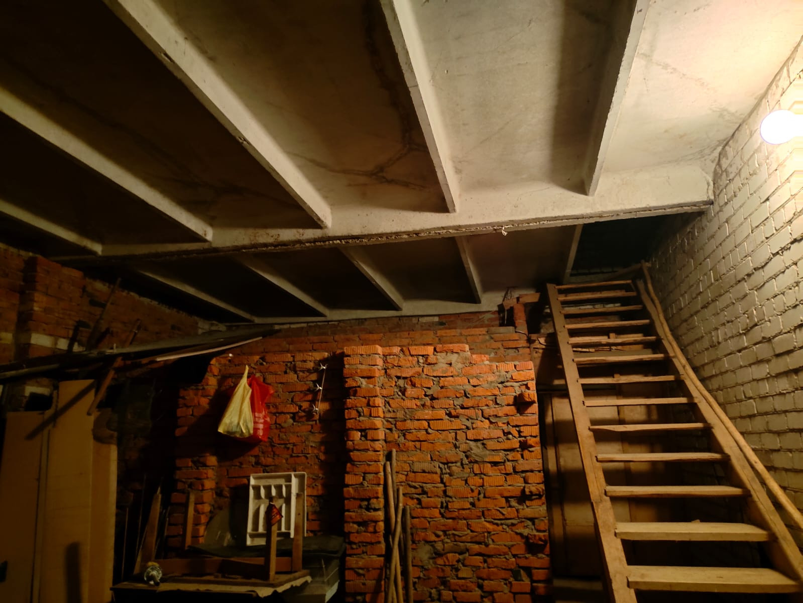 Двухэтажный кирпичный дом с просторным подвалом и балконом на втором этаже.