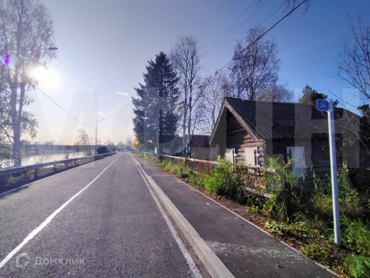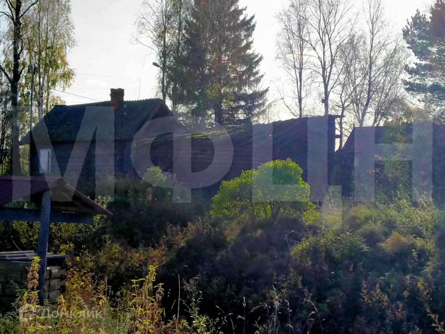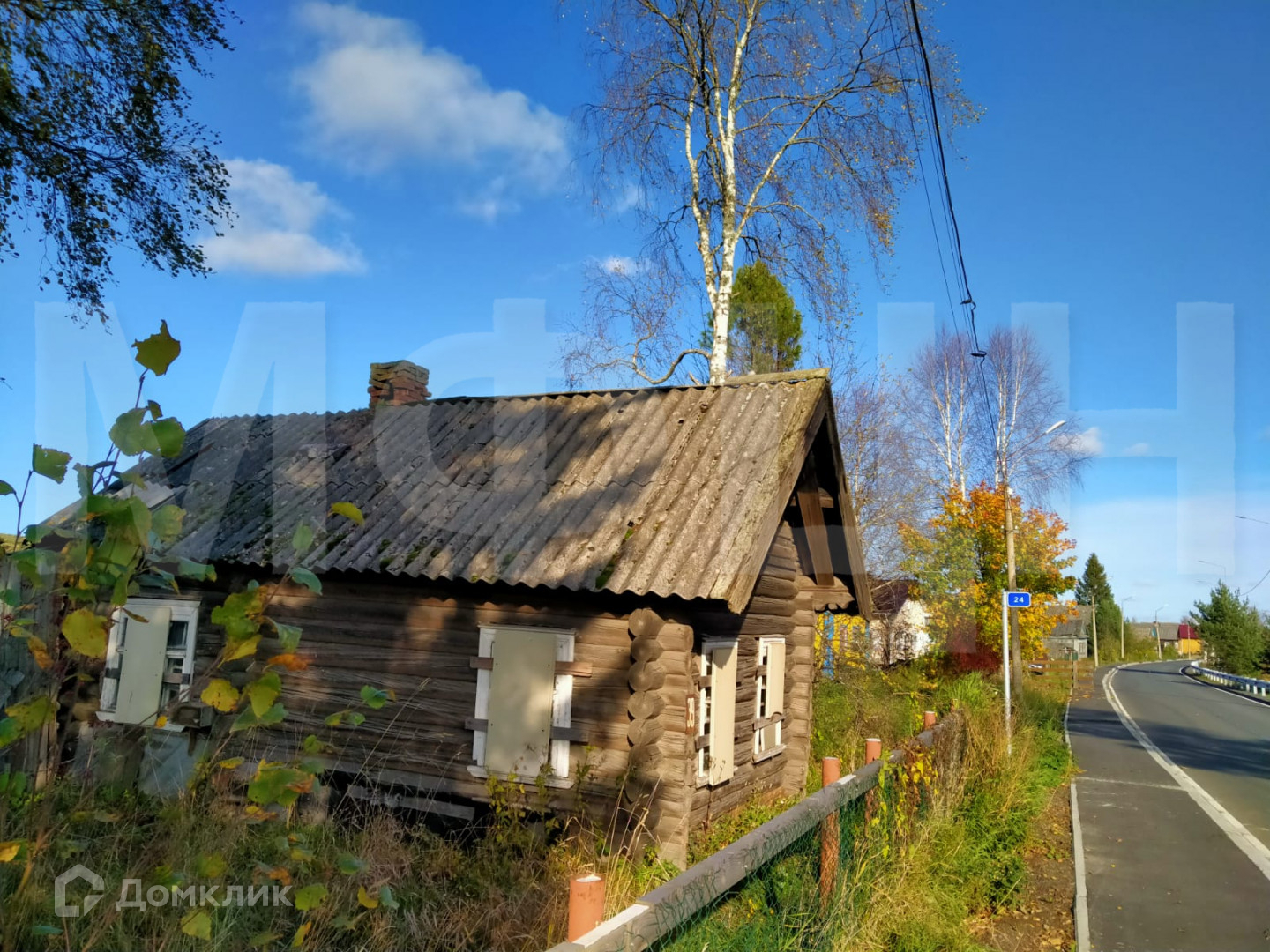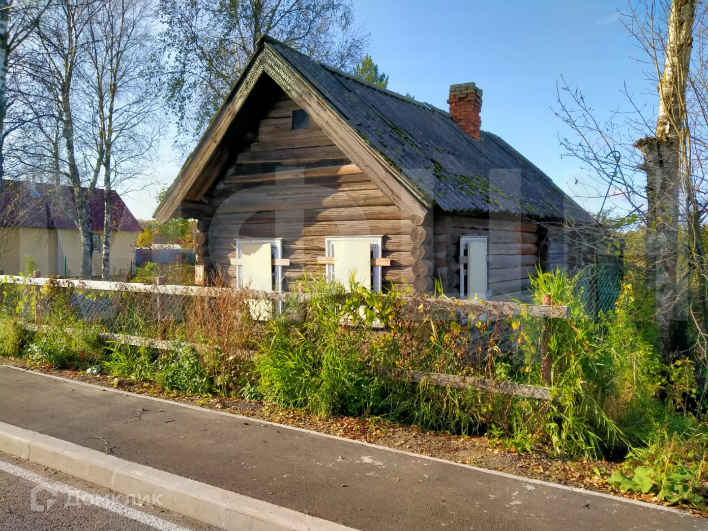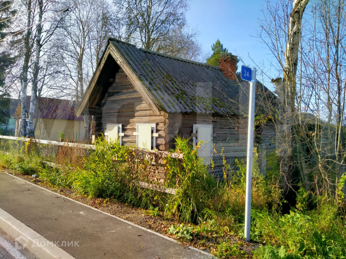На участке находится старый бревенчатый дом общей площадью 40 кв. м, под реконструкцию или снос, а также крепкая баня. Дом также можно использовать на первое время. Электричество 15 КВт. Дом и участок в собственности. Строительство не требует дополнительных разрешений. Подъезд круглогодичный, асфальтированный.