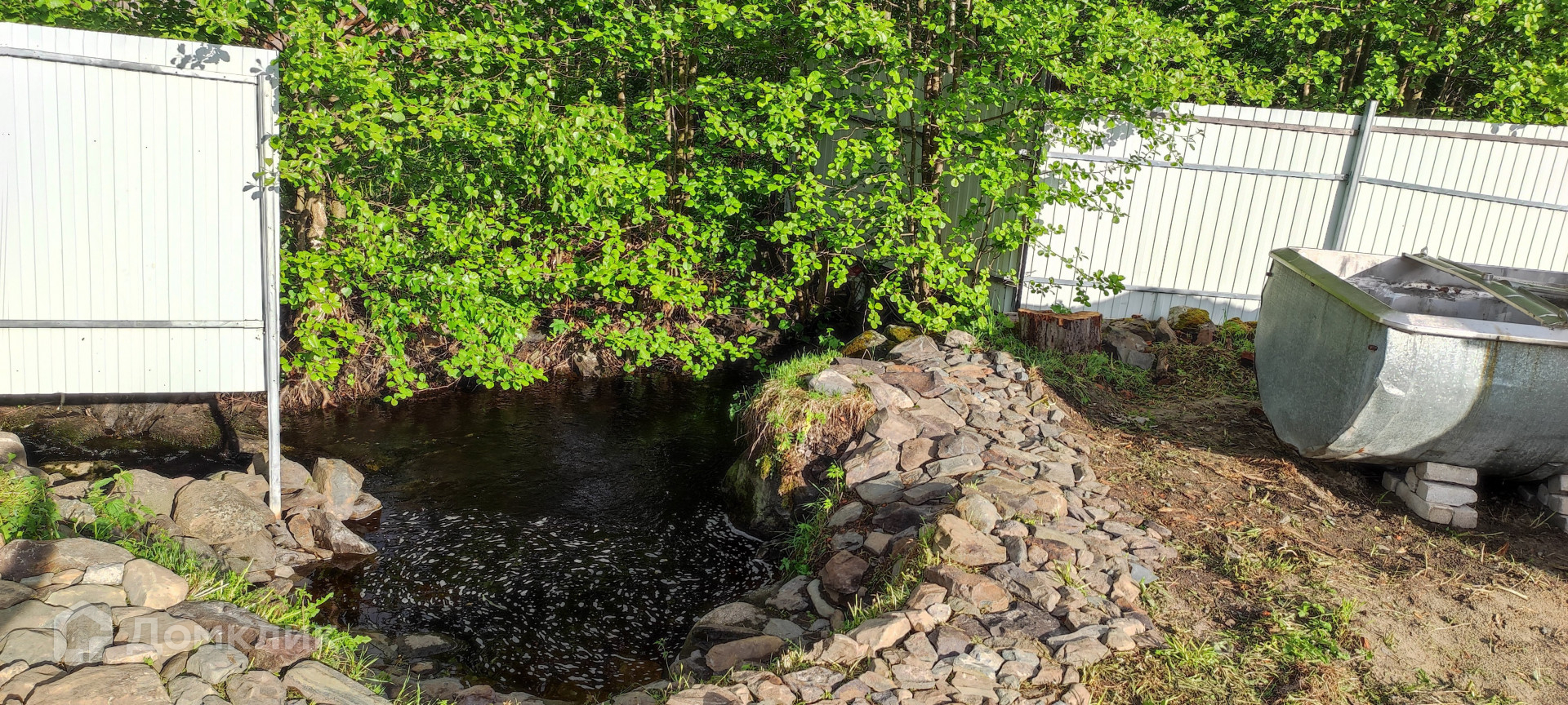 200 метров до Озера , протекает речка через участок, крепкий бревенчатый каркас дома.