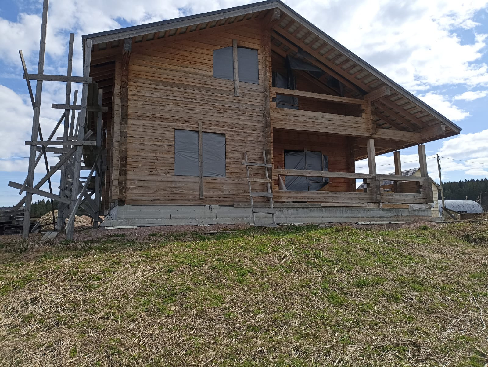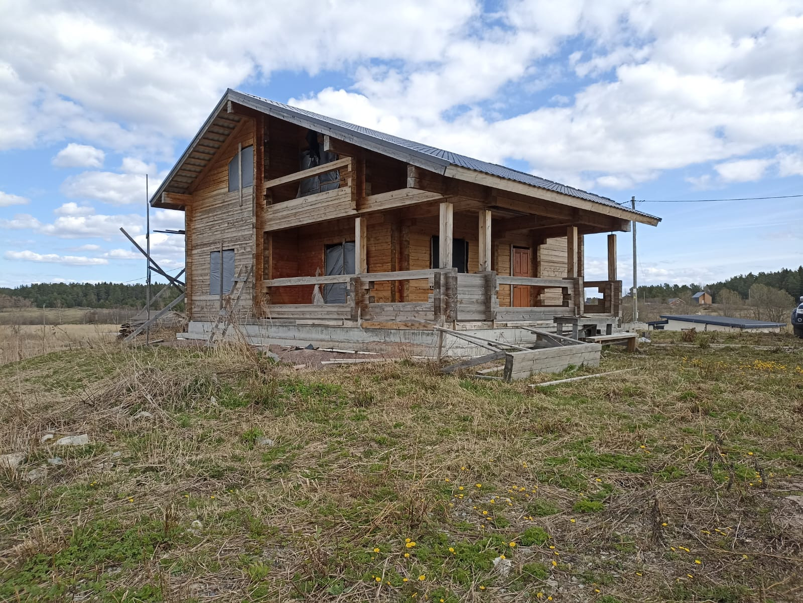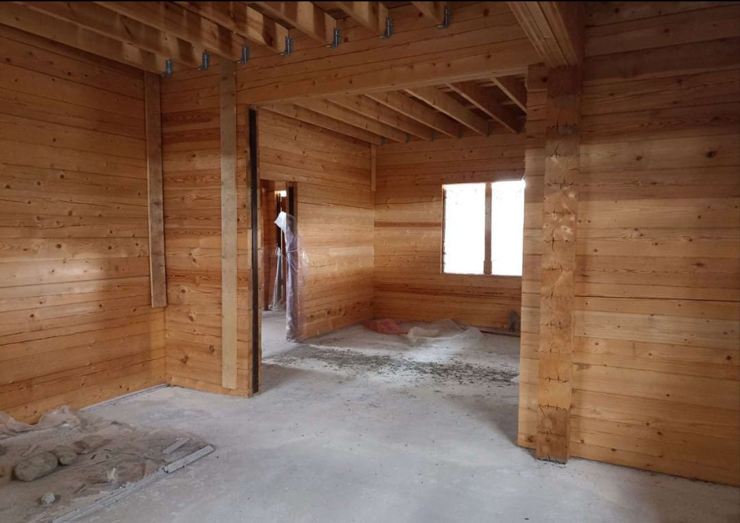 ОПИСАНИЕ: Электричество 15 кВт, к дому подведено. Сделан дренаж под домом, разводка канализации. Залит черновой пол на первом этаже. Сделан черновой потолок первого этажа и черновой пол второго этажа. Ленточный фундамент. Дом из профилированного бруса 200*200 (отделка не требуется, только покрасить), дом теплый, полностью сел, построен в 2018 году, разрешение на строительство до 2027 года. Стены покрыты огнебиозащитой. Крыша металлопрофиль 0.53, цвет - мокрый асфальт. По проекту 2 с/у, оставили один на первом этаже, на втором этаже вместо с/у планировалась гардеробная. Дом пока без окон, планируется установка, после которой торга не будет.