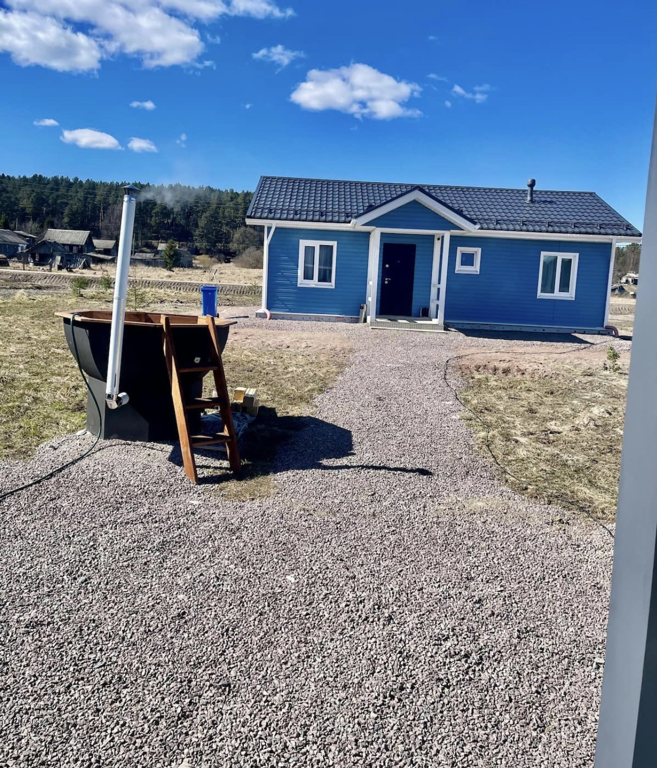 Продам каркасный дом 2021 года постройки. Удобная планировка, 2 спальни, гостиная комната переходящая в кухню с обеденной зоной. Участок 24 сотоки, ровный, сухой. Вода: скважина( имеется и колодец) так же в стоимость входит баня из бревна площадью 30кв.м. С мини кухней, зоной отдыха и терассой. Чан-купель на дровах так же входит в стоимость.