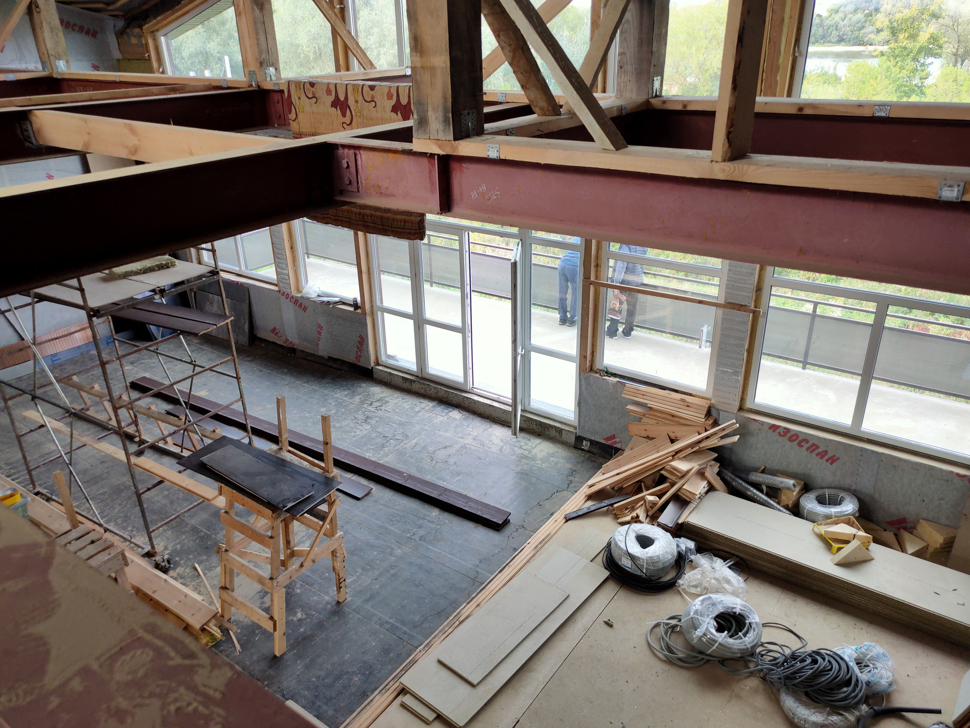 Фундамент это железобетонные сваи 21 штука 300*300 мм заглубленные на 5000 мм. Металлический каркас основания и стен из двутавров 2000, 2500, 3000 мм и стальных профилей. Стропильная система и внутренние перегородки брус 2008200 мм. Кровля из мягкой черепицы Шинглас, наружная отделка из гибкой фасадной плитки Hauberk. Окна Рехау, теплосберегающие пакеты 70 мм. Внутренняя отделка имитация бруса, предчистовая отделка ОСП.