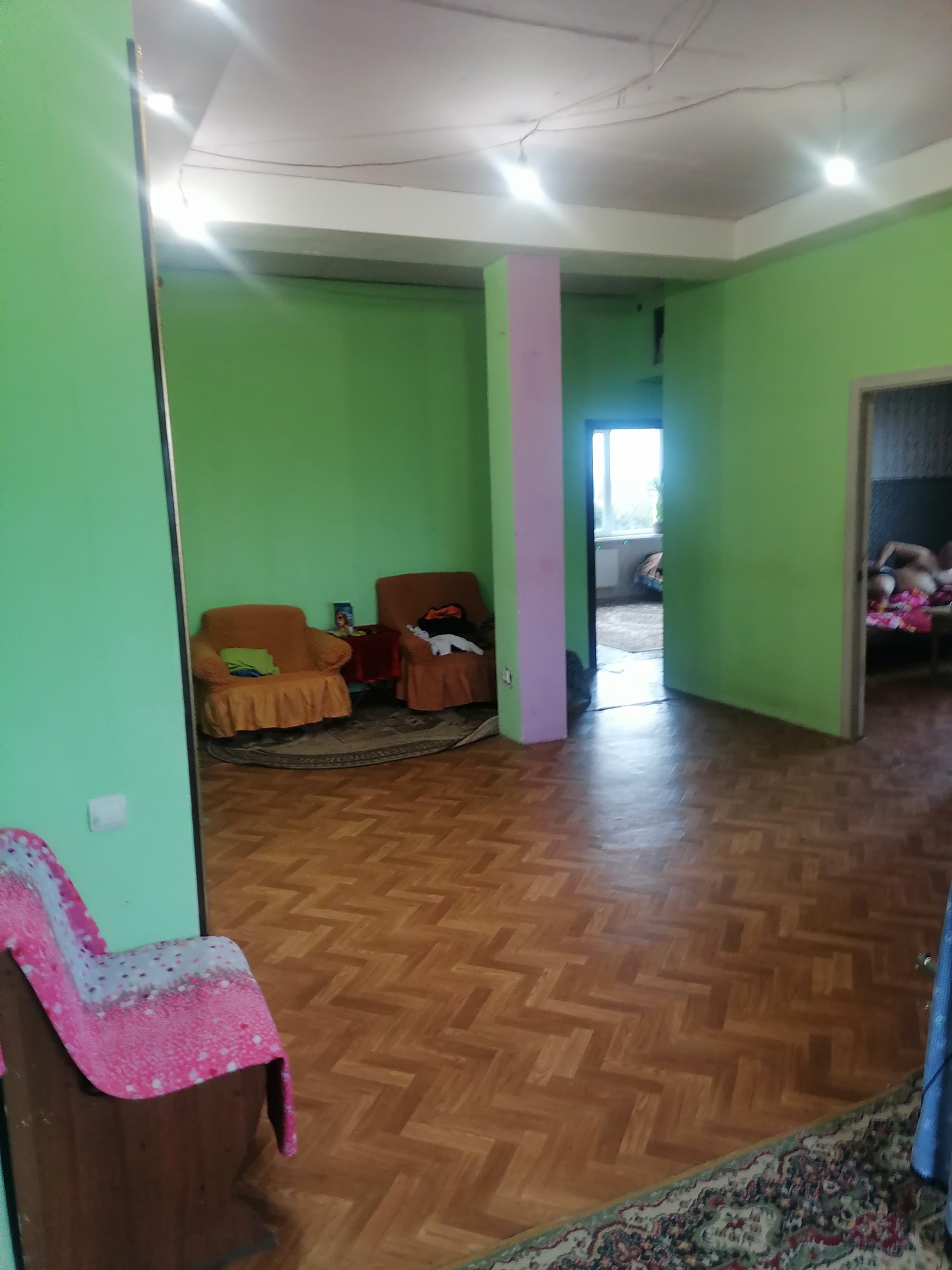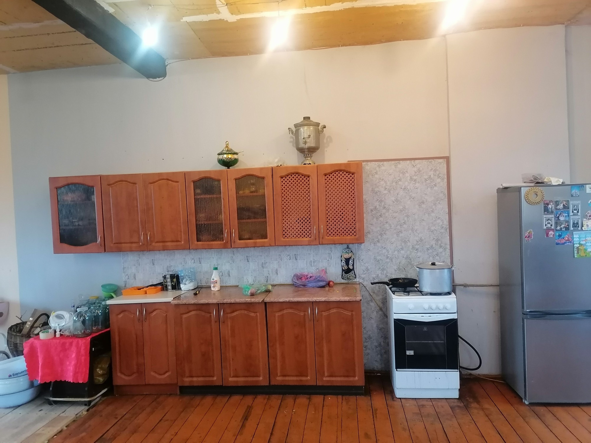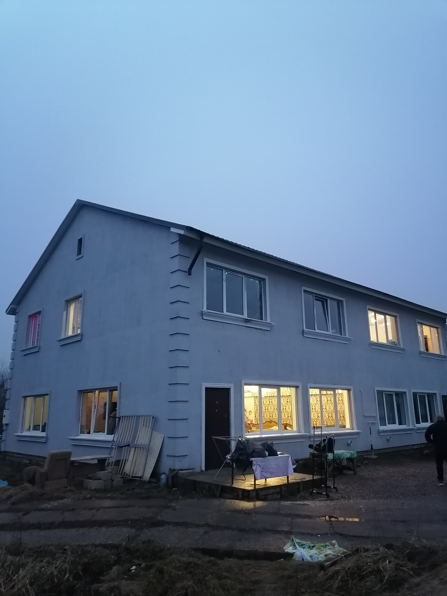 Большой двухэтажный дом, в центре посёлка. Разделён на три автономные части изолированные друг от друга части, с отдельными входами ( первый этаж разделён на две одинаковых части, второй этаж целиком). При желании можно сделать две блок секции, как планировали в начале строительства. В доме установлены 3 двухконтурных котла, 4 санузла, 3 кухни с подводкой газа к каждой. Второй этаж нуждается скорее в отделке, чем в ремонте. Можно использовать как мини-отель или хостел. Низкие коммунальные платежи, зимой выходит 8-9 тысяч ( электроэнергия и газ), при том, что свет почти никогда не выключается.