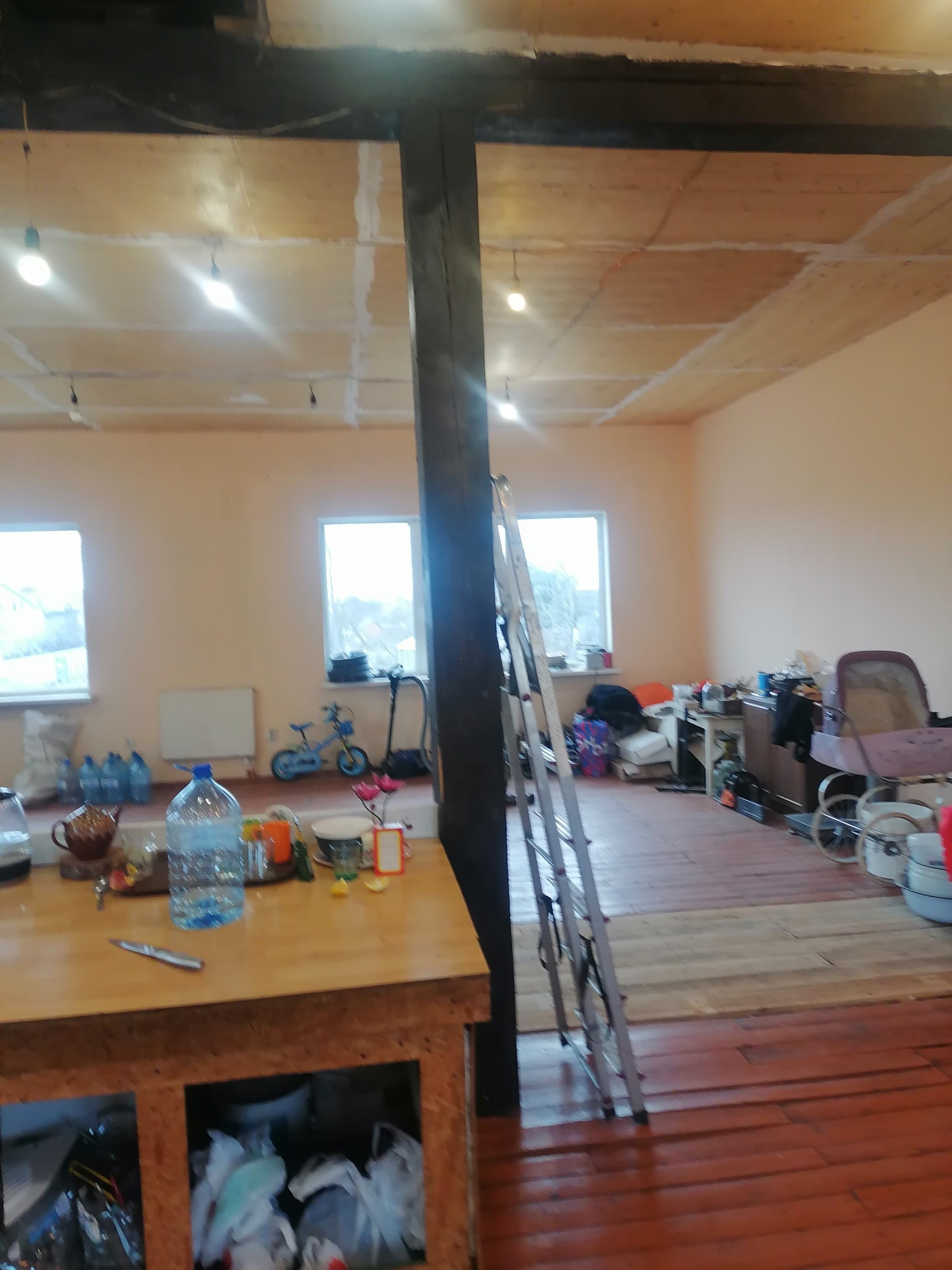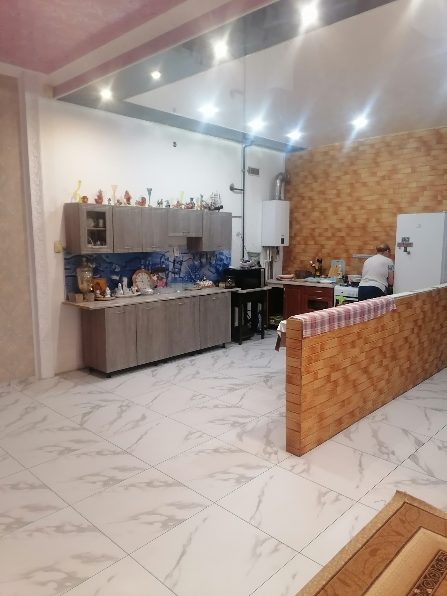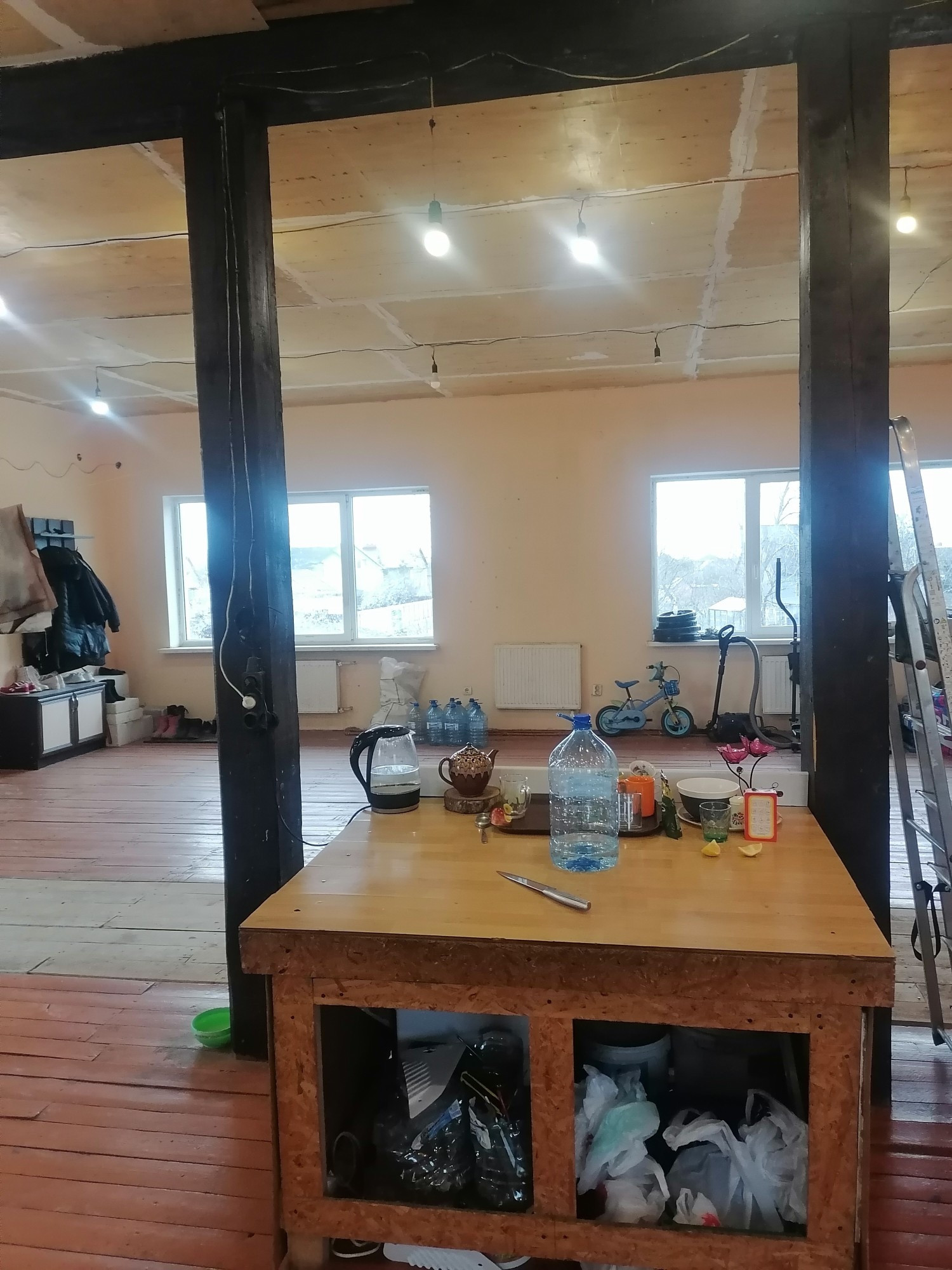 Большой двухэтажный дом, в центре посёлка. Разделён на три автономные части изолированные друг от друга части, с отдельными входами ( первый этаж разделён на две одинаковых части, второй этаж целиком). При желании можно сделать две блок секции, как планировали в начале строительства. В доме установлены 3 двухконтурных котла, 4 санузла, 3 кухни с подводкой газа к каждой. Второй этаж нуждается скорее в отделке, чем в ремонте. Можно использовать как мини-отель или хостел. Низкие коммунальные платежи, зимой выходит 8-9 тысяч ( электроэнергия и газ), при том, что свет почти никогда не выключается.