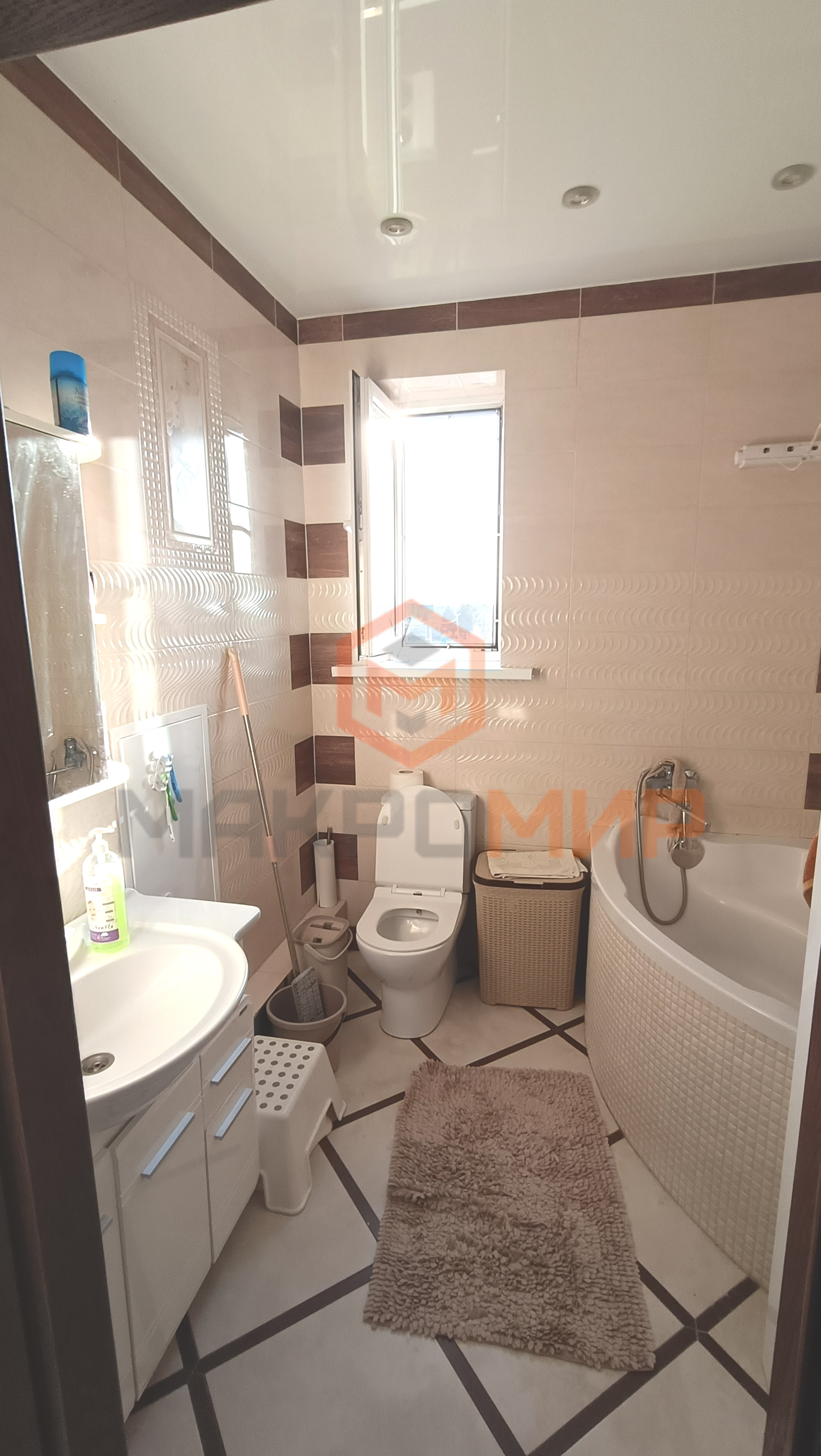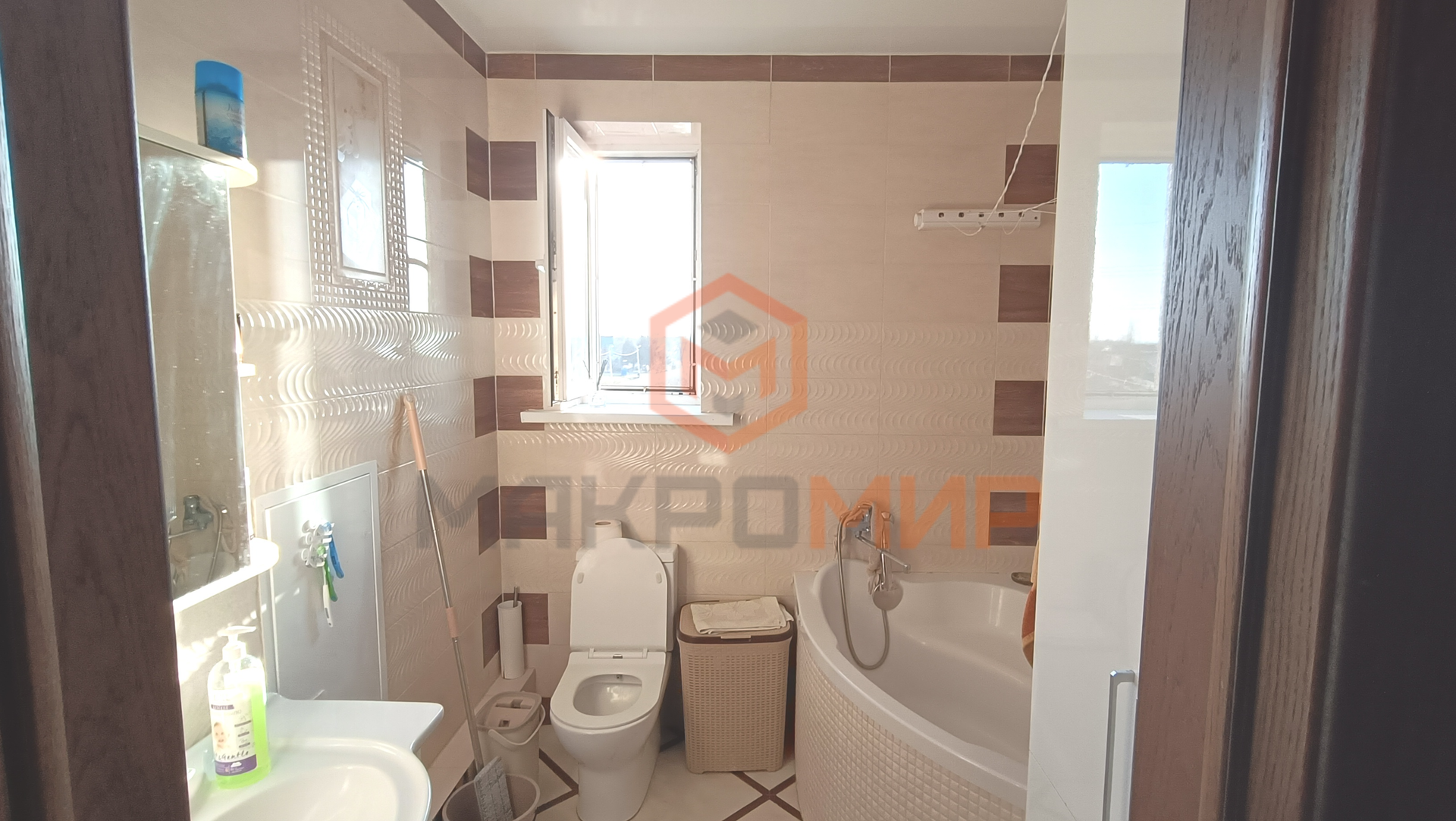 В санузле имеется большое окно.
