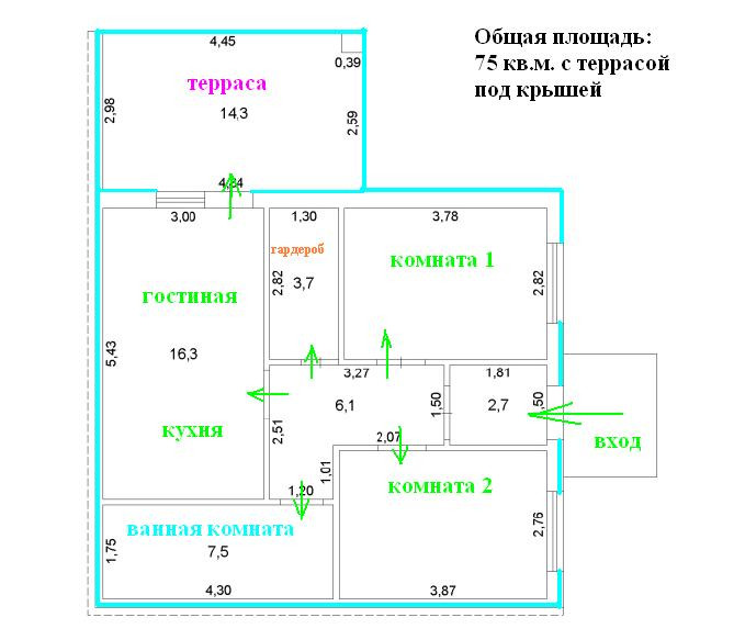 Общая площадь 75 м2