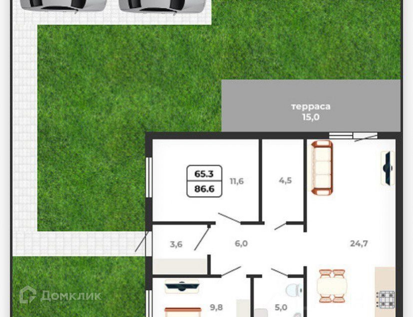 Общая площадь 86.6 м2